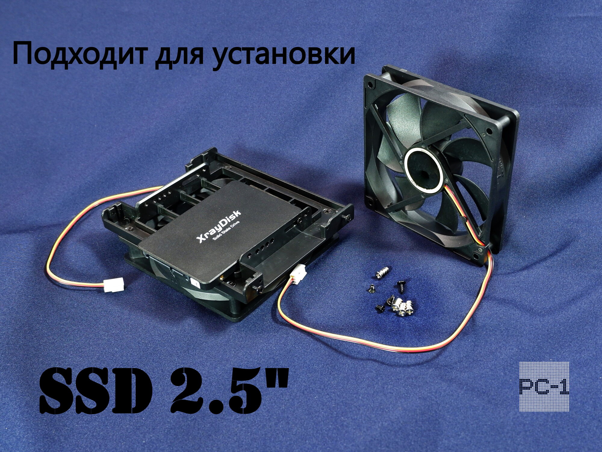 Салазки для 2x SATA дисков SSD или HDD 2.5" с вентилятором 120мм. Кронштейн для установки двух жестких дисков в корпус ПК в отсек 5.25"
