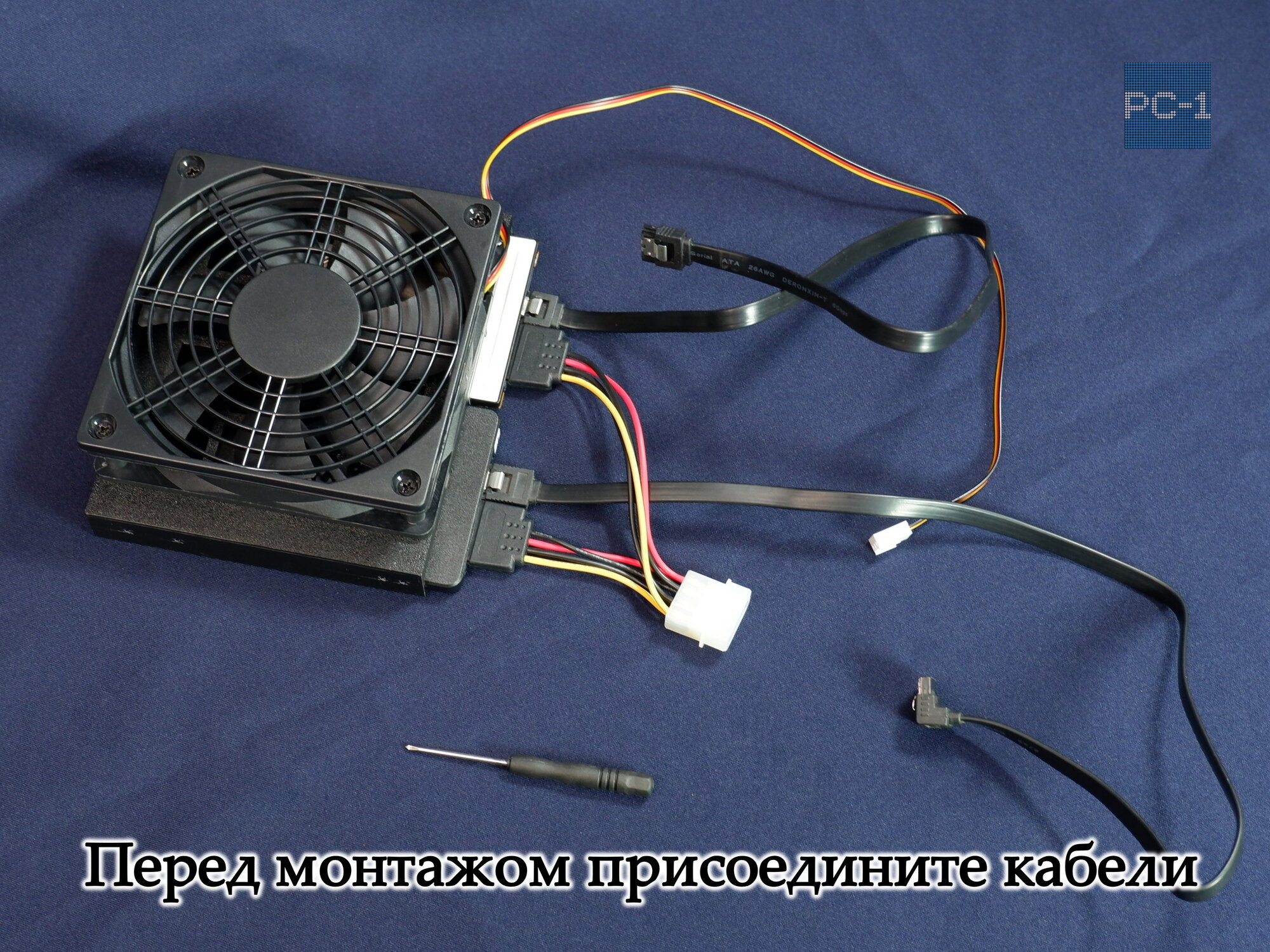 Салазки с вентилятором 120мм кронштейн для установки жесткого диска HDD 3.5" в корпус ПК в отсек 5.25"+ SATA кабель + MOLEX на SATA + винты
