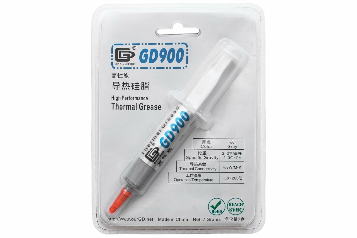Ниже Вы можете прочитать отзывы на Термопаста GD900, 7 грамм, шприц, теплопроводность 4.8Вт/(м·К), ознакомится с подробными характеристиками, посмотреть интересные обзоры и фотографии на Термопаста GD900, 7 грамм, шприц, теплопроводность 4.8Вт/(м·К).