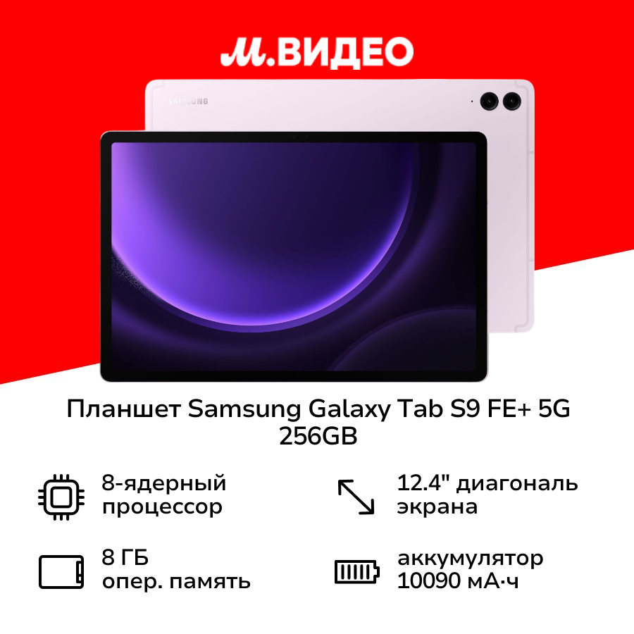 Планшет SAMSUNG Galaxy Tab S9 FE+ (X616), 8/128Gb, Wi-Fi + Cellular, лаванда