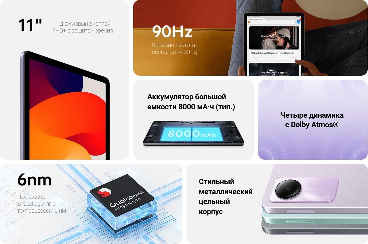 Планшет Xiaomi Redmi Pad SE 6/128 ГБ Пурпурный, глобальной прошивки, русский язык , Google Play , не поддерживает SIM-карту