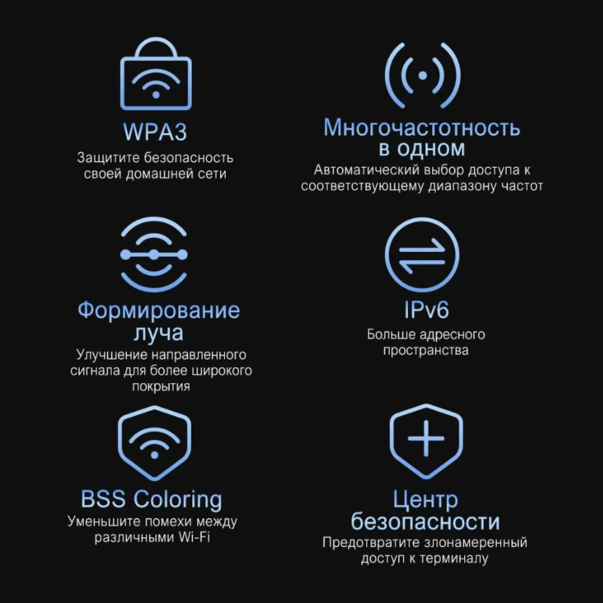 | Функции и особенности | метод шифрования данных WPA / метод шифрования данных WPA2 / метод шифрования данных WPA3 / поддержка IPv6 / поддержка MIMO / режим моста / режим репитера (повторителя) |