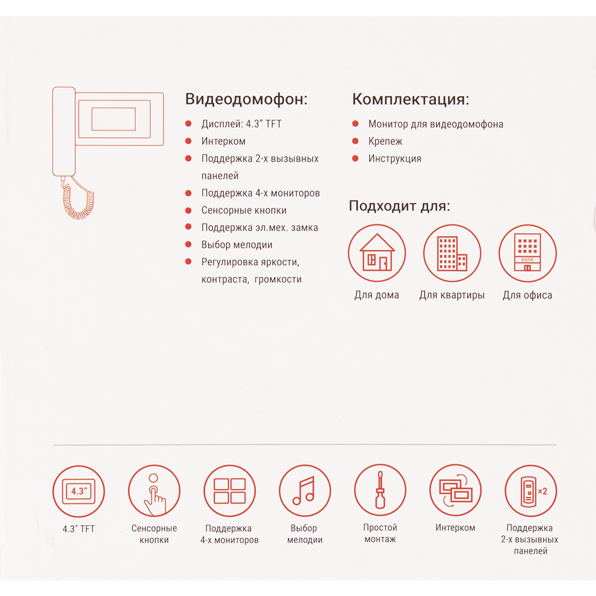 | Тип товара | комплект видеодомофона |