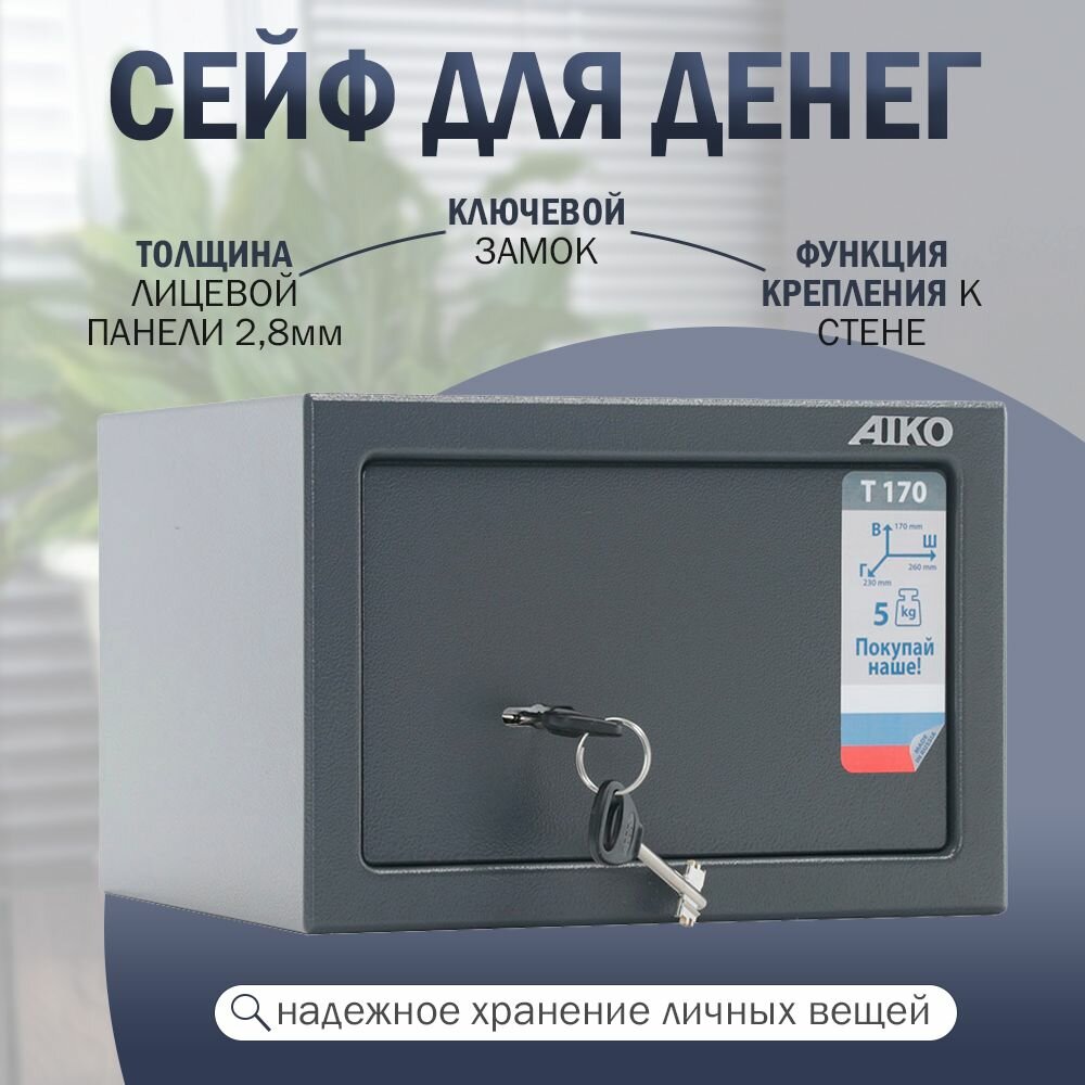 Сейф AIKO "Т-170", для бумаг и ценностей, ключевой замок, цвет RAL 7024