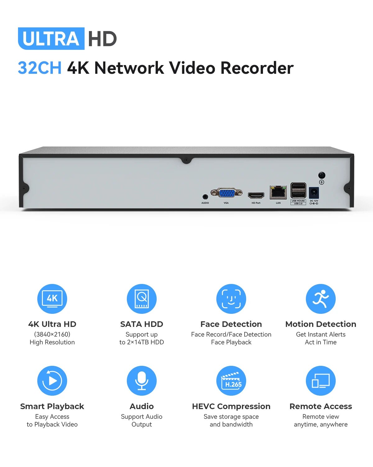 Купить Сетевой видеорегистратор H.View 4K 32CH NVR 2/5/8MP, Нет