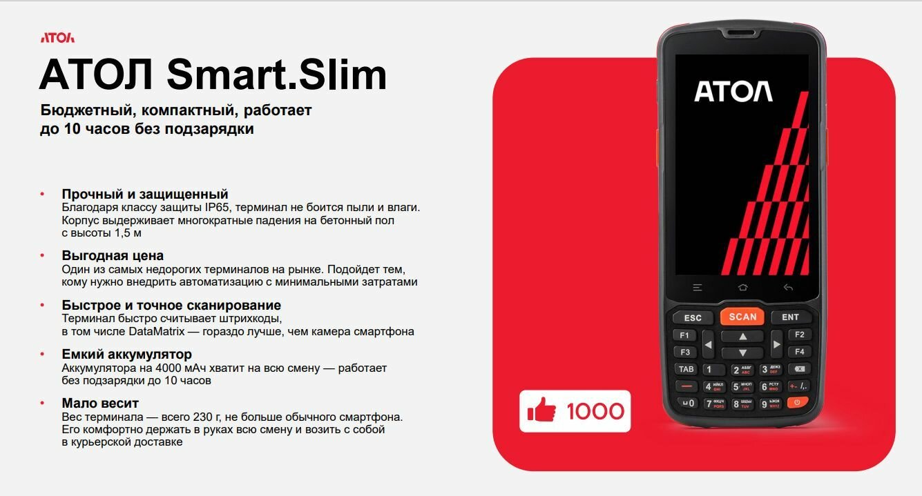 Терминал сбора данных (ТСД) АТОЛ Smart.Slim 52531 интересное: