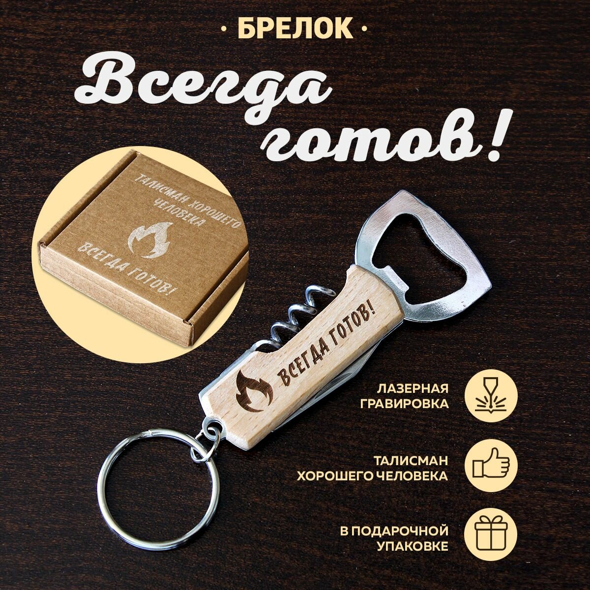 СохранитьУниверсальный мужской брелок - складной нож с гравировкой "Всегда готов!" и "Мы в ответе за тех, кому наливаем" - талисман хорошего человека / Новогодний подарок любимому интересное: