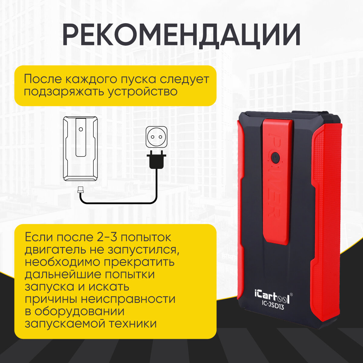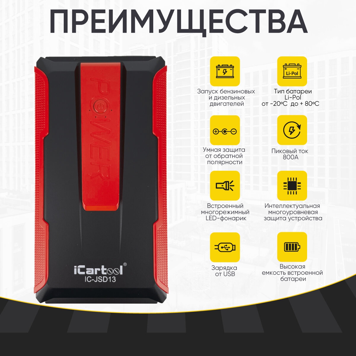 Пусковое устройство 12В, 7 200 мАч, 400/800А iCartool IC-JSD13 интересное: