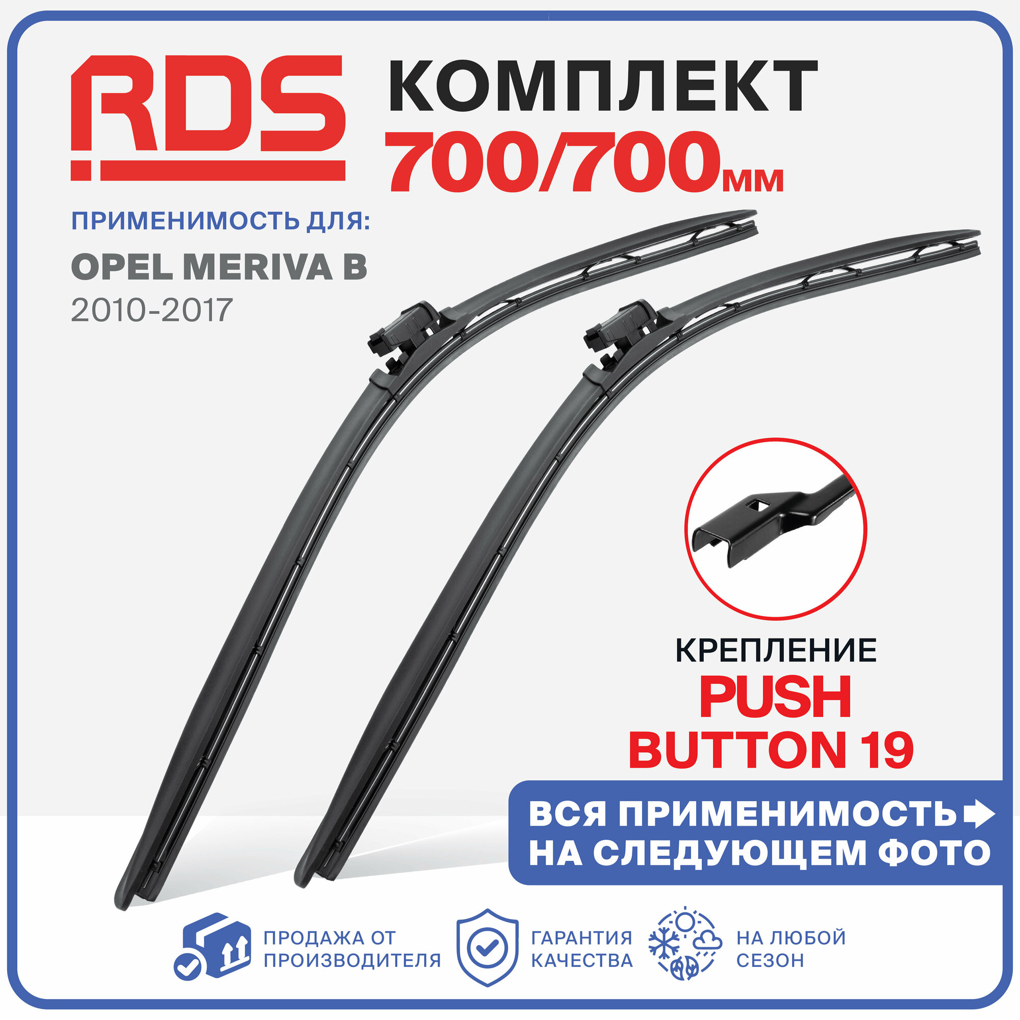 700 575 мм. Push Button 19 мм. Комплект бескаркасных щеток стеклоочистителя RD5 дворники на Opel Meriva B, Опель Мерива Б