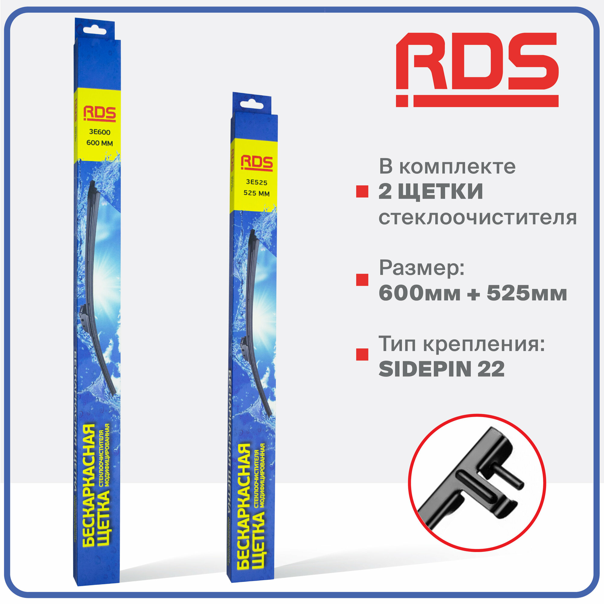600 400мм. Push button 19мм. Щетки стеклоочистителя дворники бескаркасные RD5 на Fiat Doblo II, Citroen C3 Picasso, Фиат Добло, Ситроен Ц3 Пикассо