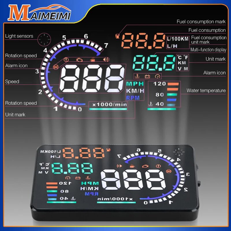 Купить OBD2 HUD Автомобильный проекционный дисплей A8 HUD Цифровой спидометр Проектор скорости на лобовом стекле Дисплей с сигнализацией температуры и оборотов в скоростях воды, A8
