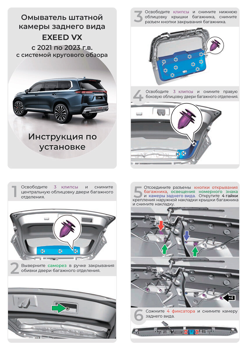 Омыватель камеры заднего вида для EXEED VX 2021 - 2023 дорестайлинг I (модель c системой кругового обзора) интересное: