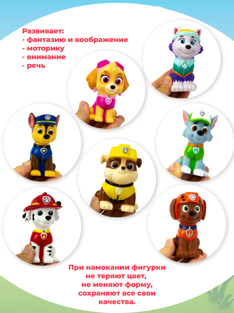 Набор игрушек для ванны Щенячий Патруль: Чейз, Крепыш, Маршал, Скай, Рокки, Зума, Эверест
