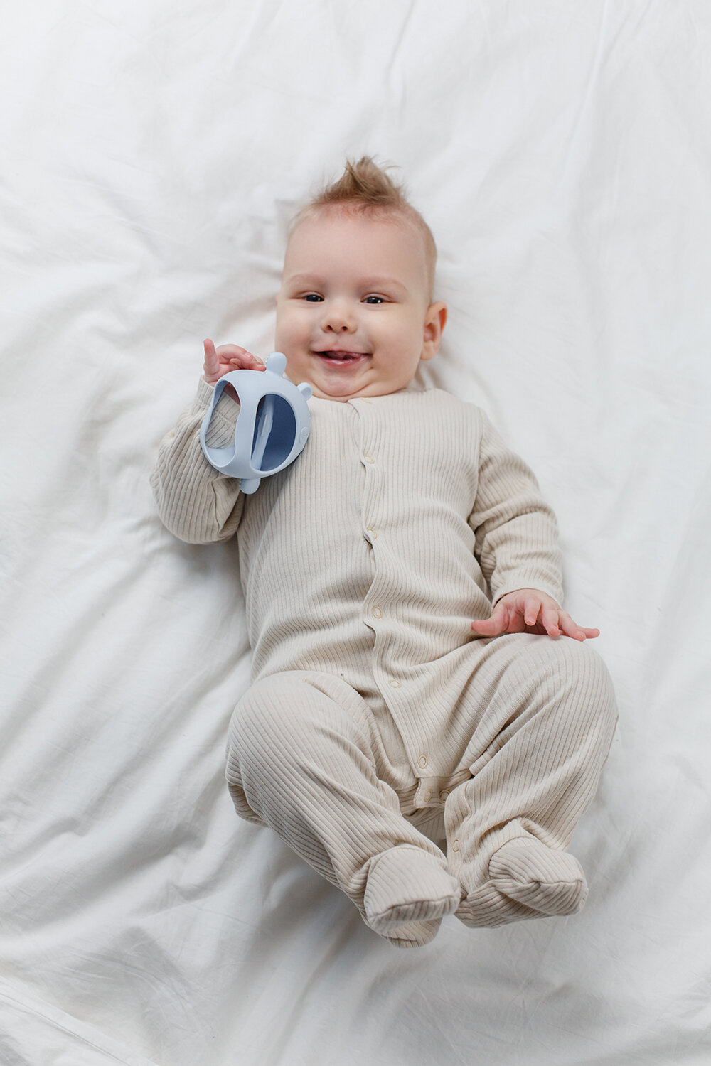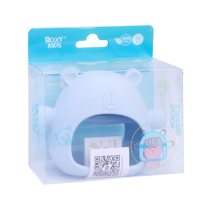 Купить Силиконовый прорезыватель на руку "Мишка", голубой