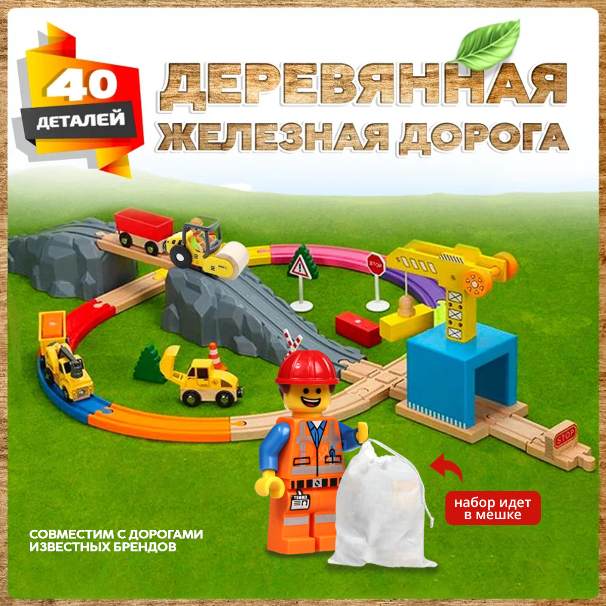 Деревянная железная дорога 100 деталей совместима с Икеа и Брио