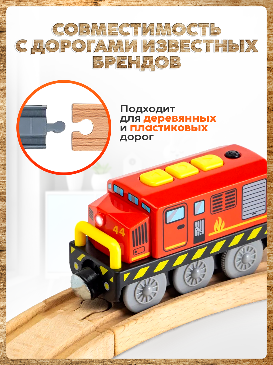 Паровозик на батарейках для деревянной железной дороги Икеа и Brio — поезд игрушка для детей с музыкой и светом