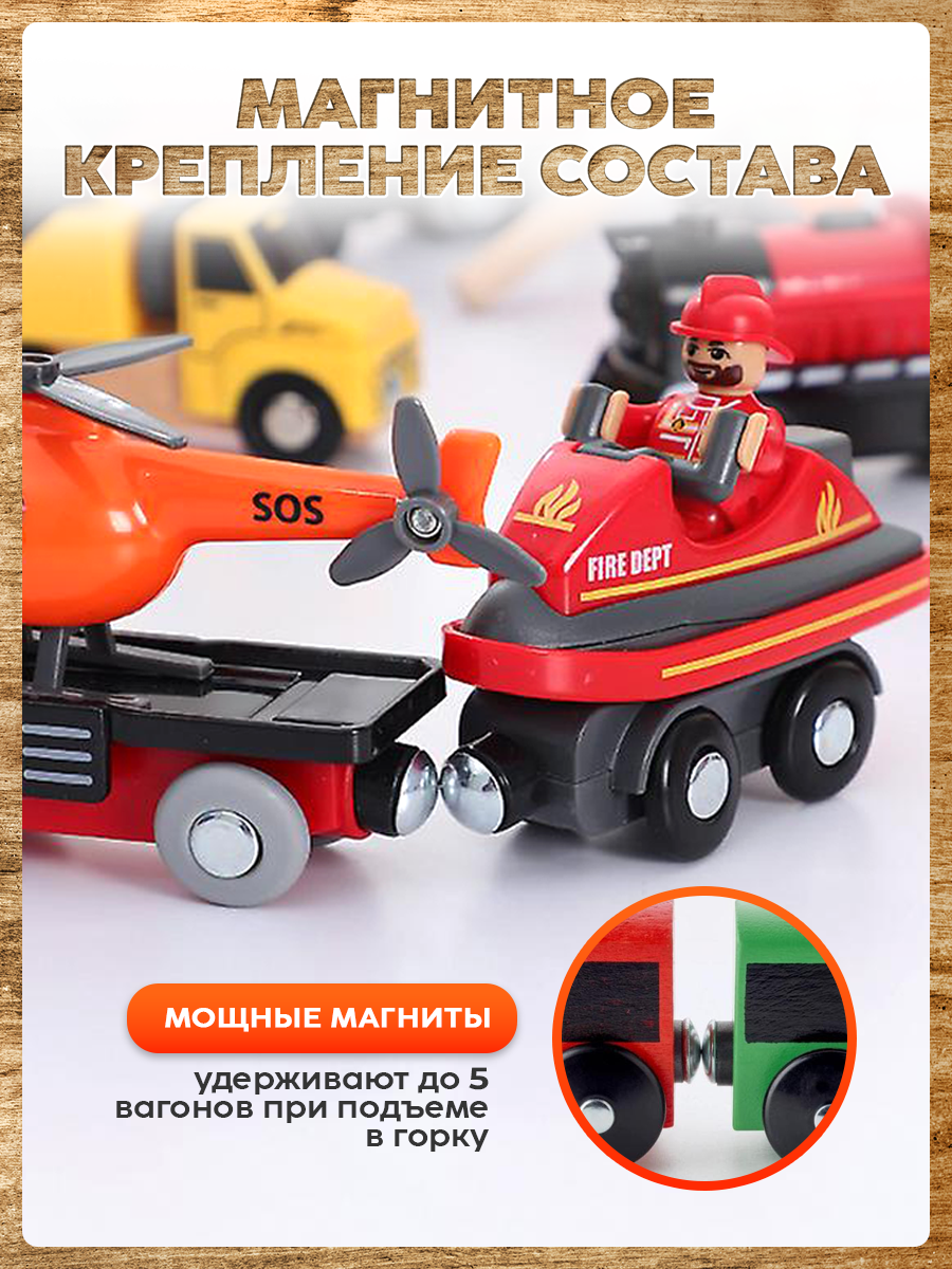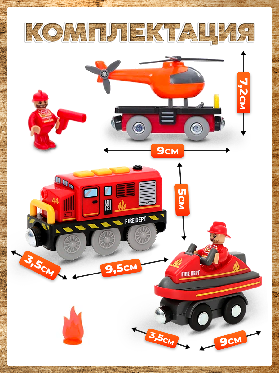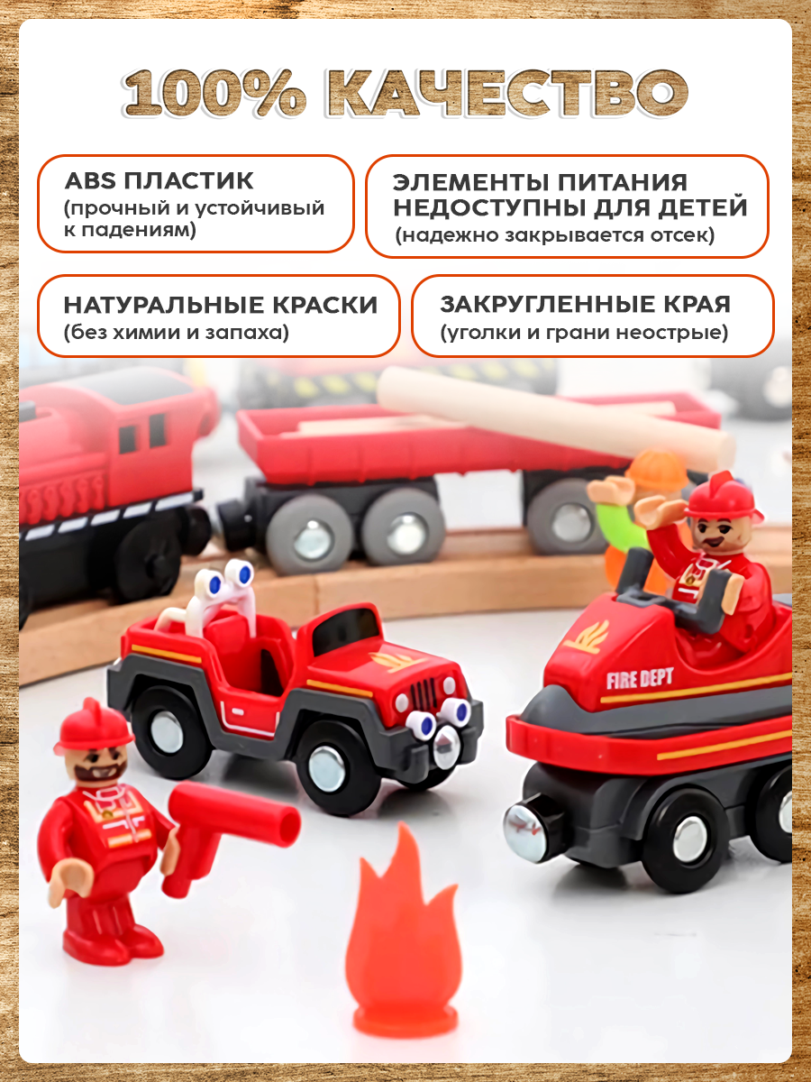 Купить Пожарный набор с электропоездом для деревянной железной дороги
