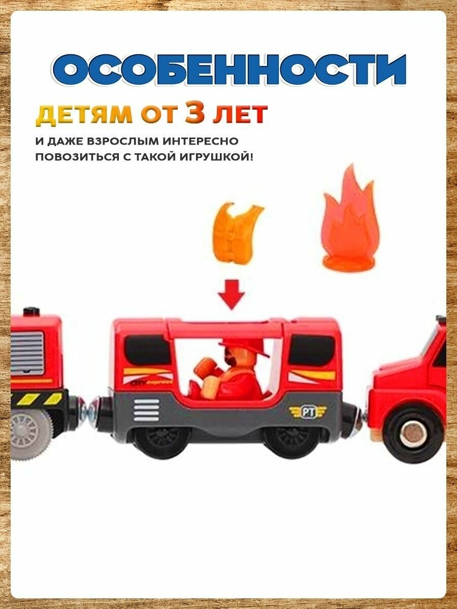 Пожарный набор с электропоездом для деревянной железной дороги