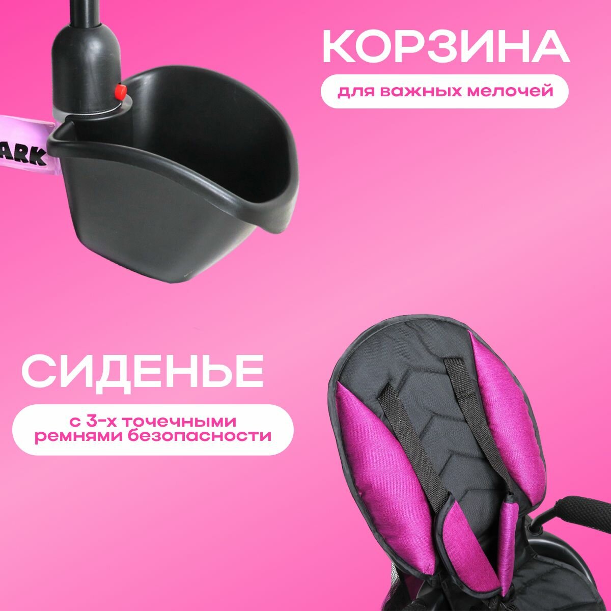 Велосипед Детский Трехколесный Складной с Капюшоном SHARK Мягкое Сиденье, Корзинка, Руль с кармашком, Ограничительный Бампер и Ремни Безопасности 2023