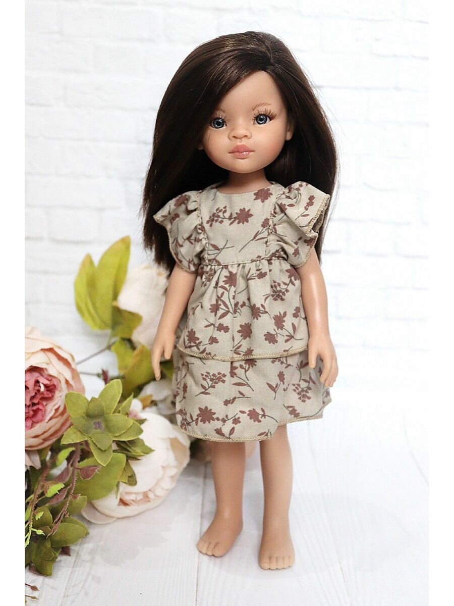 Одежда для кукол 32-35см Paola Reina,Vidal Rojas, Berjuan и др., Платье (волан) для кукол, темно-коричневый цветок, бежевый