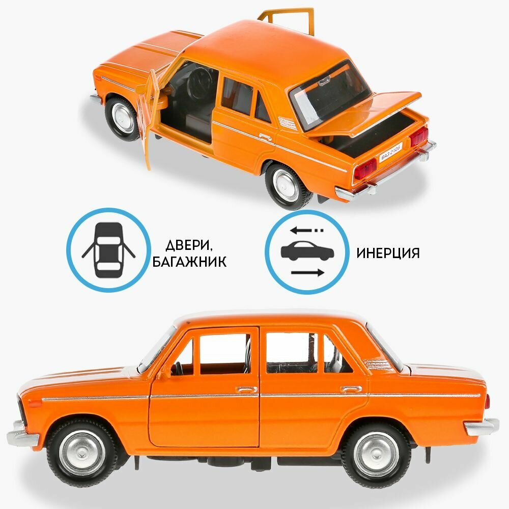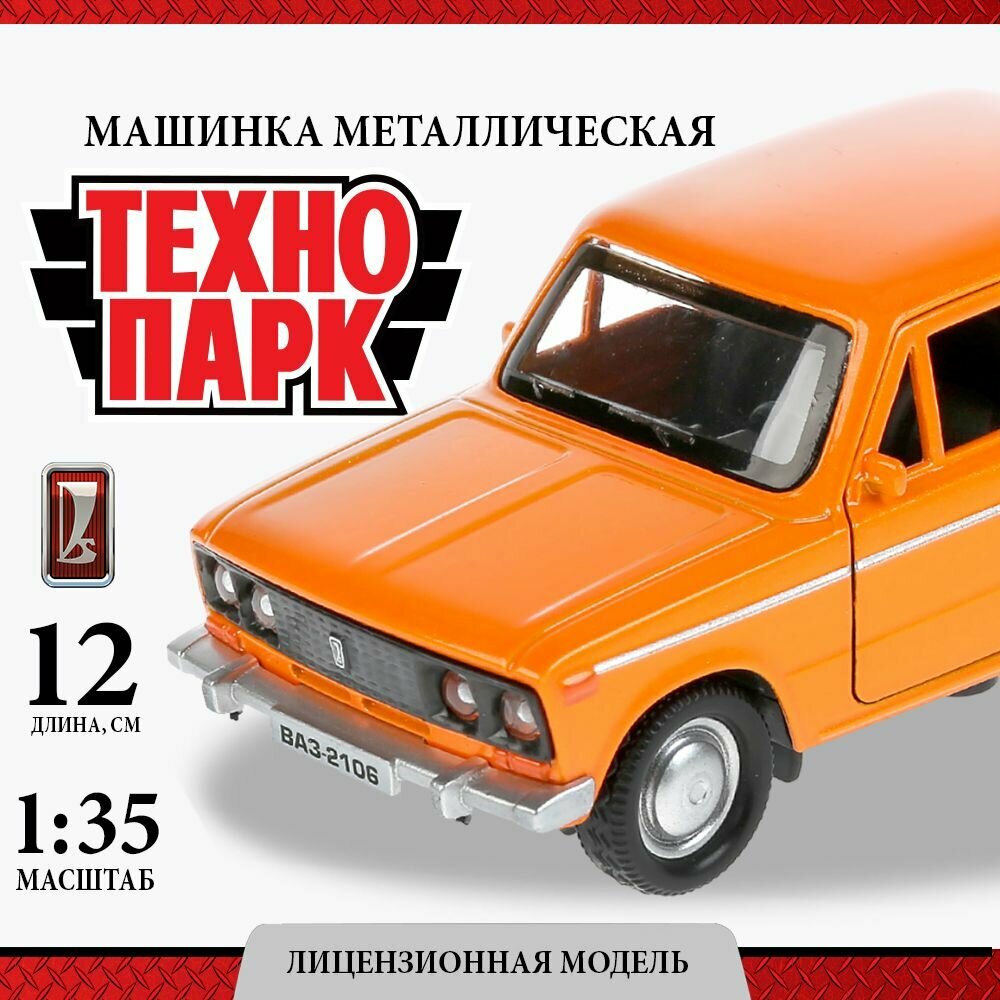 Машинка игрушка детская для мальчика ВАЗ-2106 Жигули Технопарк металлическая модель коллекционная инерционная с открывающимися дверьми оранжевый 12 см