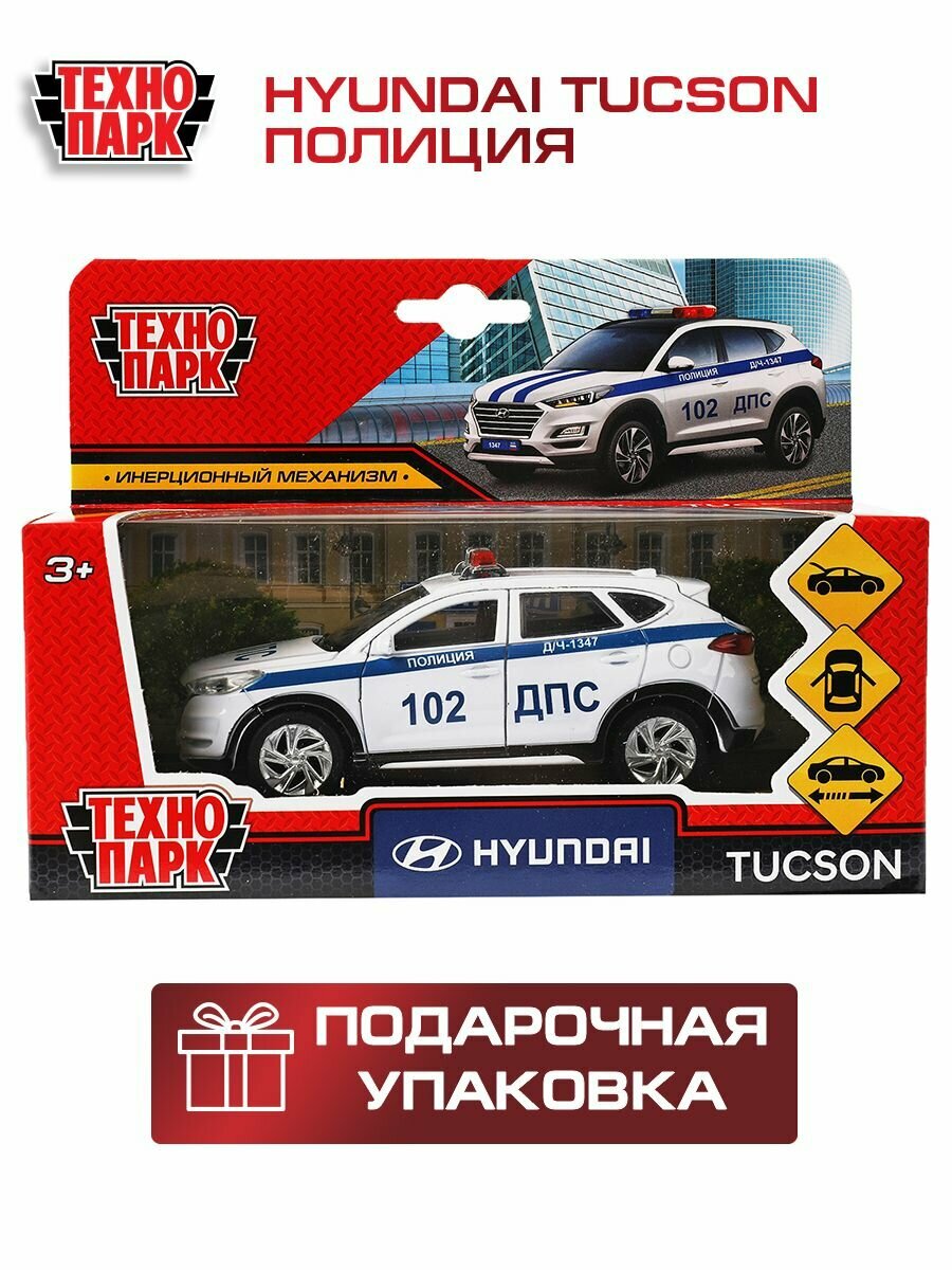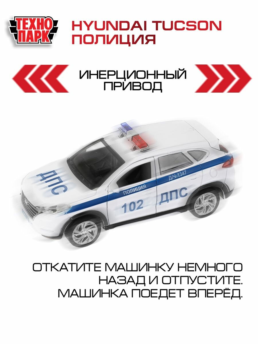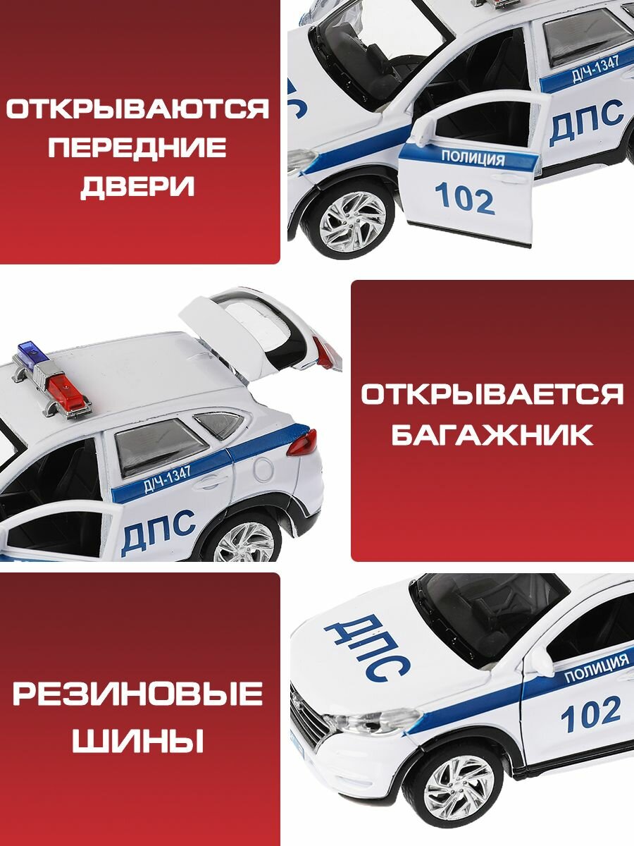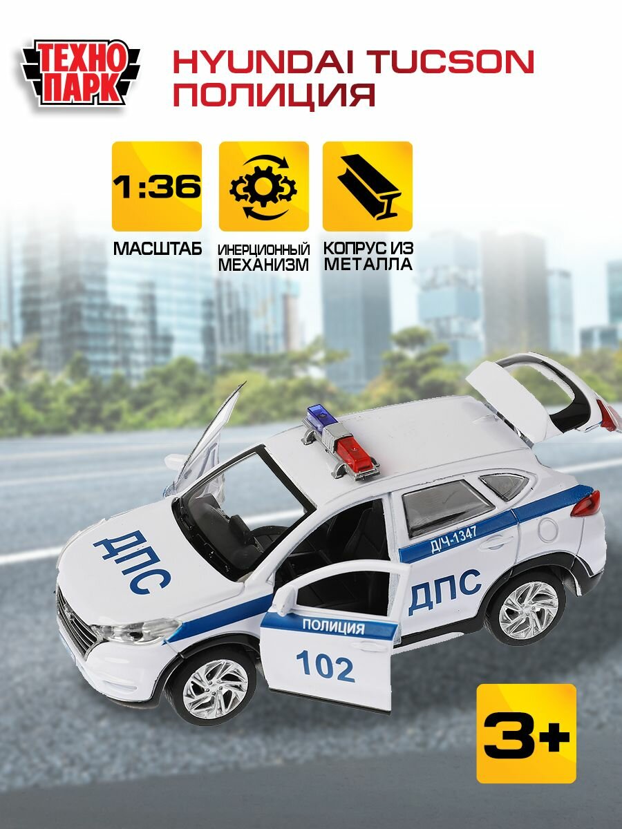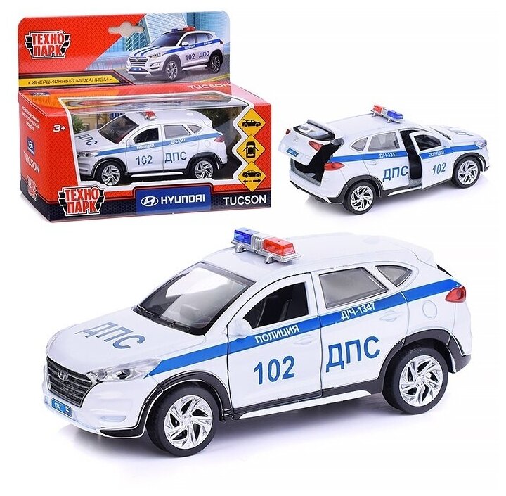 Технопарк. Модель "Hyundai Tucson Полиция" металл 12см, двери, багаж. инер, бел. арт.TUCSON-12POL-WH TUCSON-12POL-WH