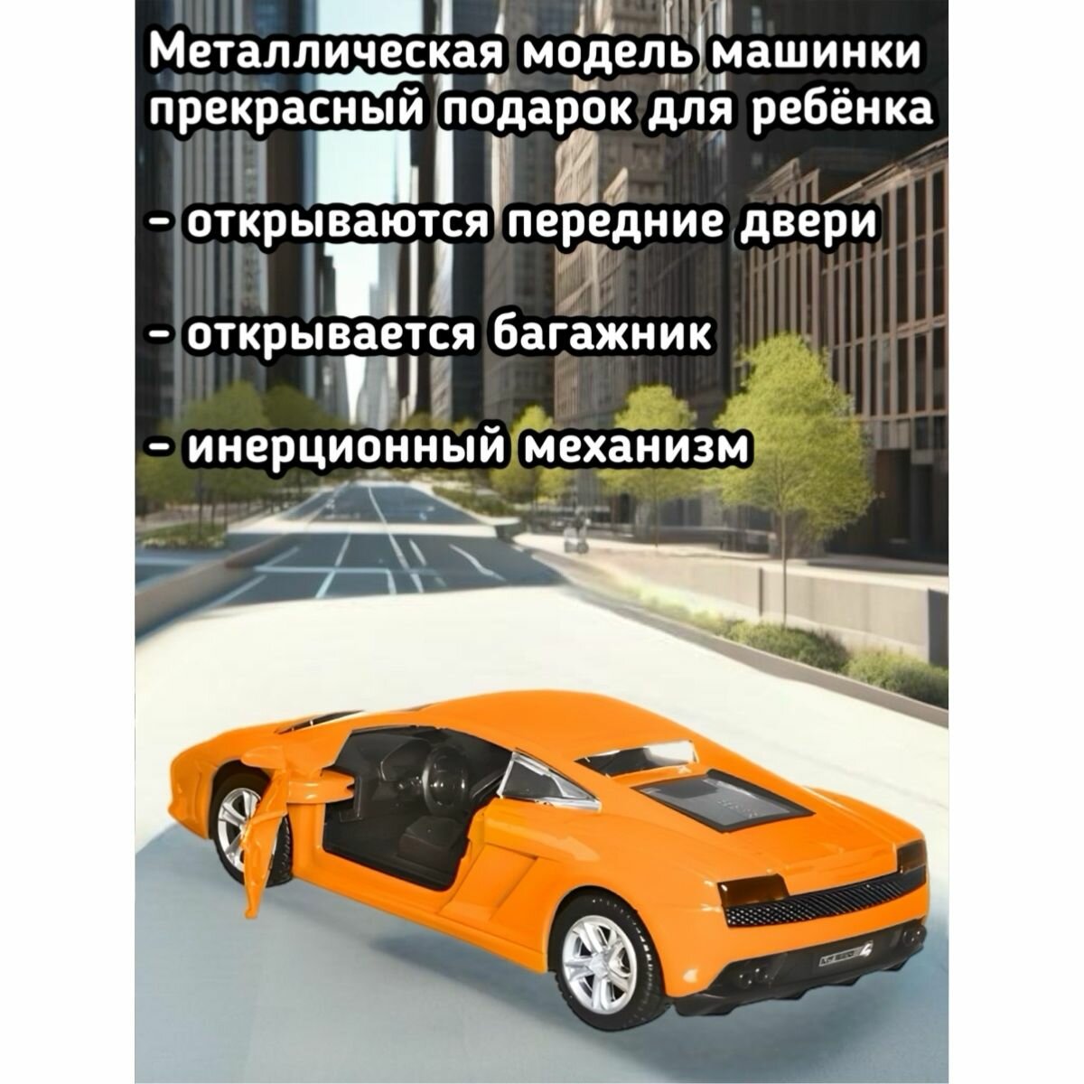 | Дополнительная информация | Машинка игрушка детская для мальчика Lamborghini Gallardo LP 560-4 Технопарк детская модель металлическая коллекционная инерционная с открывающимися дверьми оранжевый 11,4 см |