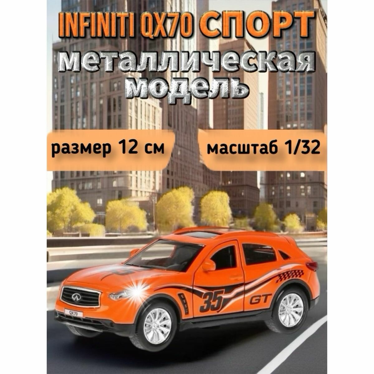 СохранитьМашина Infiniti QX70 Спорт 12 см оранжевая металл инерция Технопарк QX70-S интересное: