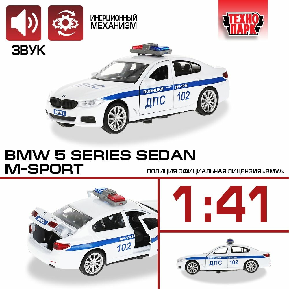 Машинки для мальчиков металлическая модель Технопарк BMW 5-er M-Sport Полиция 12 см
