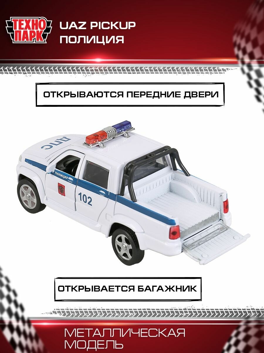 Машинка детская УАЗ Пикап Полиция 12 см, Технопарк, белая, открываются двери и багажник, металлический корпус интересное: