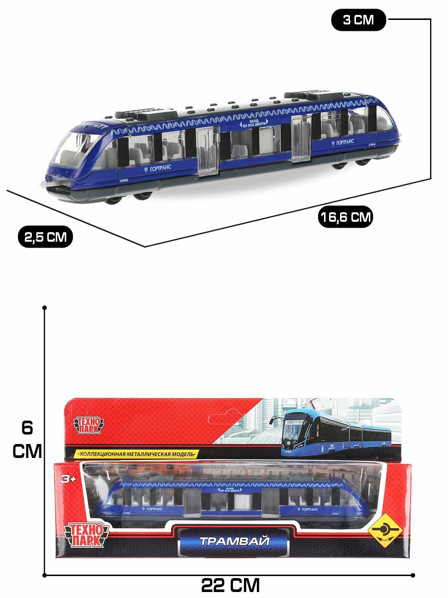 Купить Машинка детская Трамвай Метрополитен 16.5 см, Технопарк, синяя, металлическая
