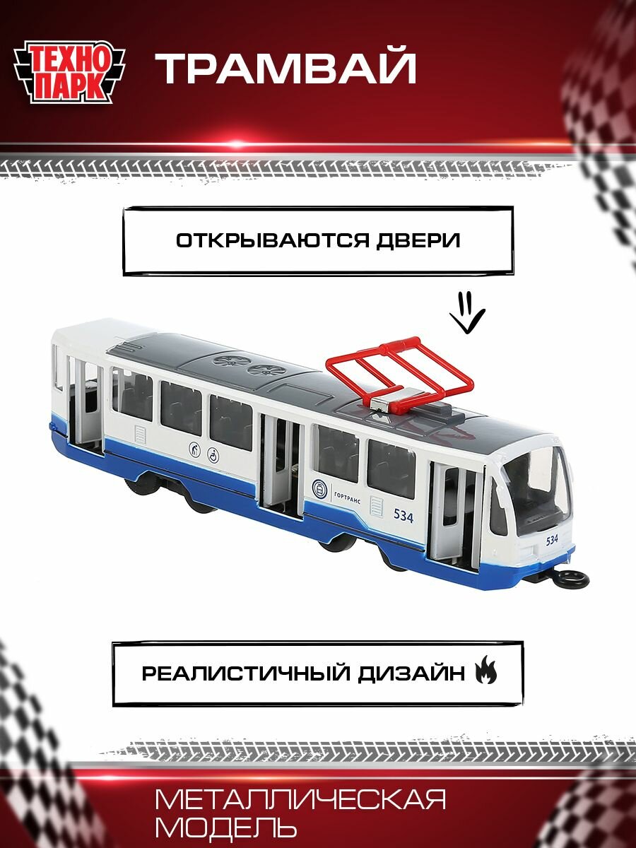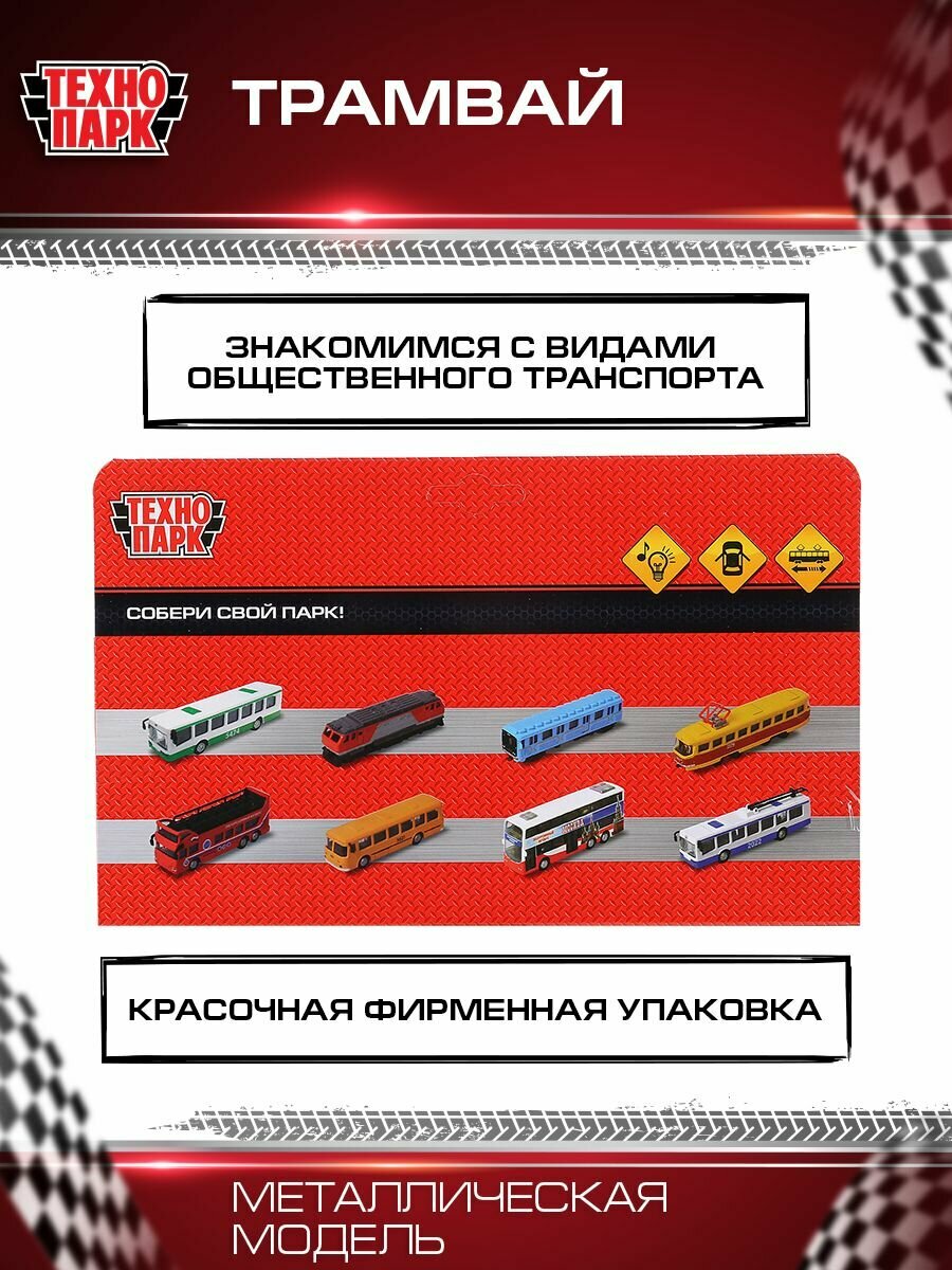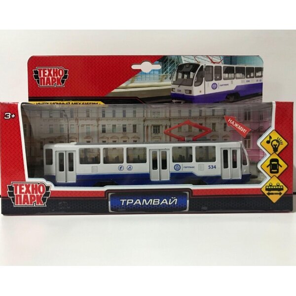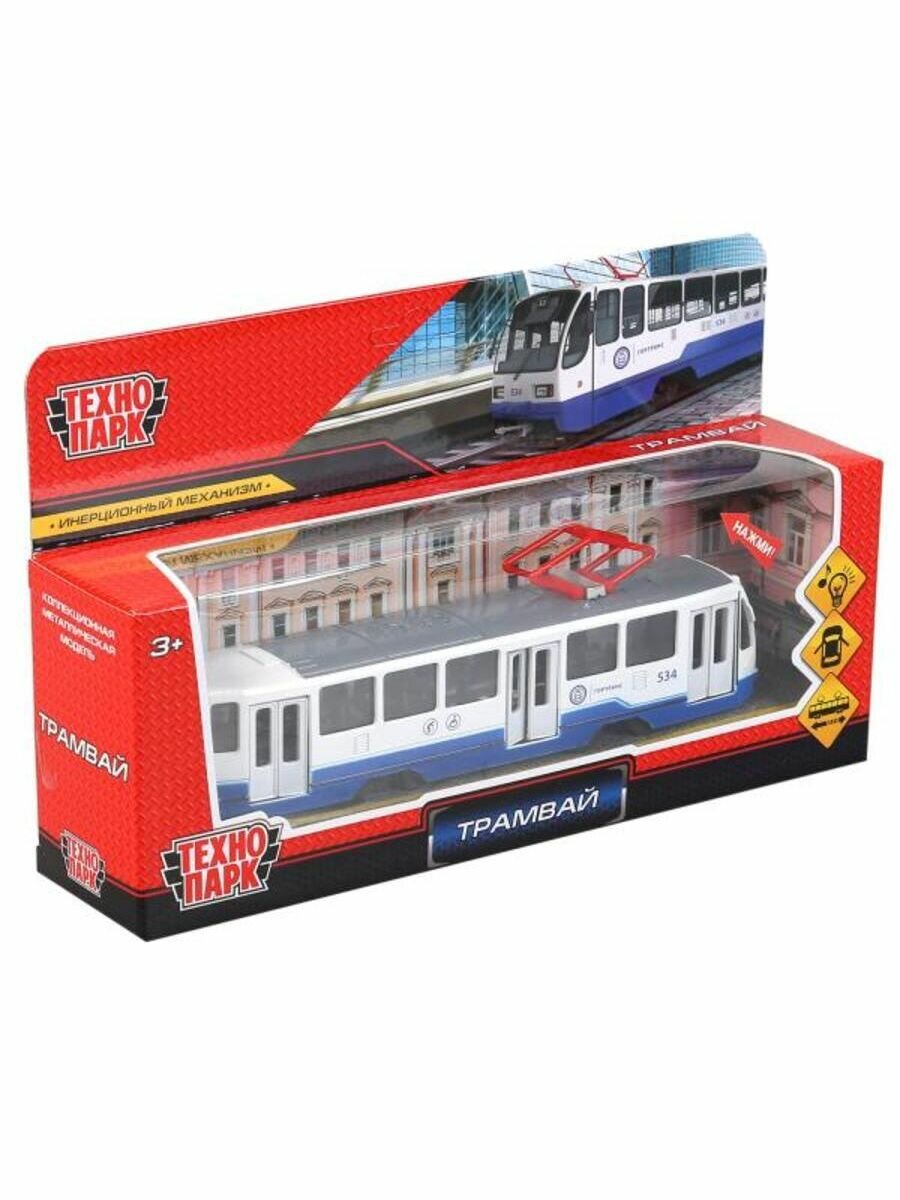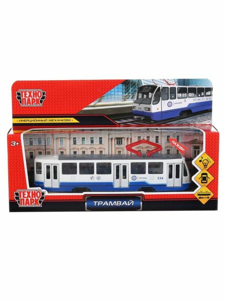 Машинка Технопарк Трамвай 18,5 см, свет/звук TRAM71403-18SL-BUWH