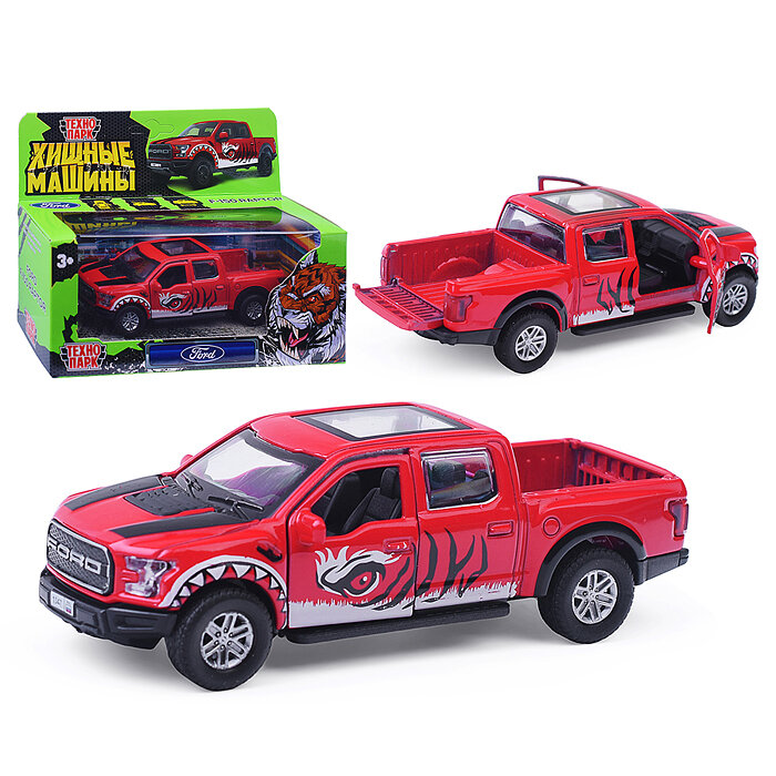 СохранитьМашинка детская Ford F150 Raptor Хищники 12 см, Технопарк, красная, открываются двери и багажник интересное: