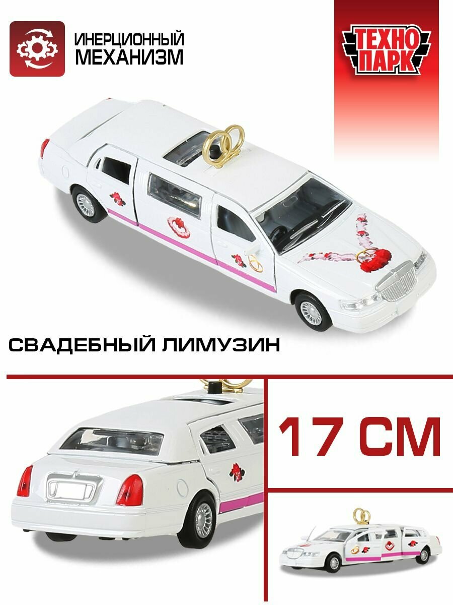 Машина металл свет-звук лимузин свадебный, 17 см. Технопарк CT10-105-L