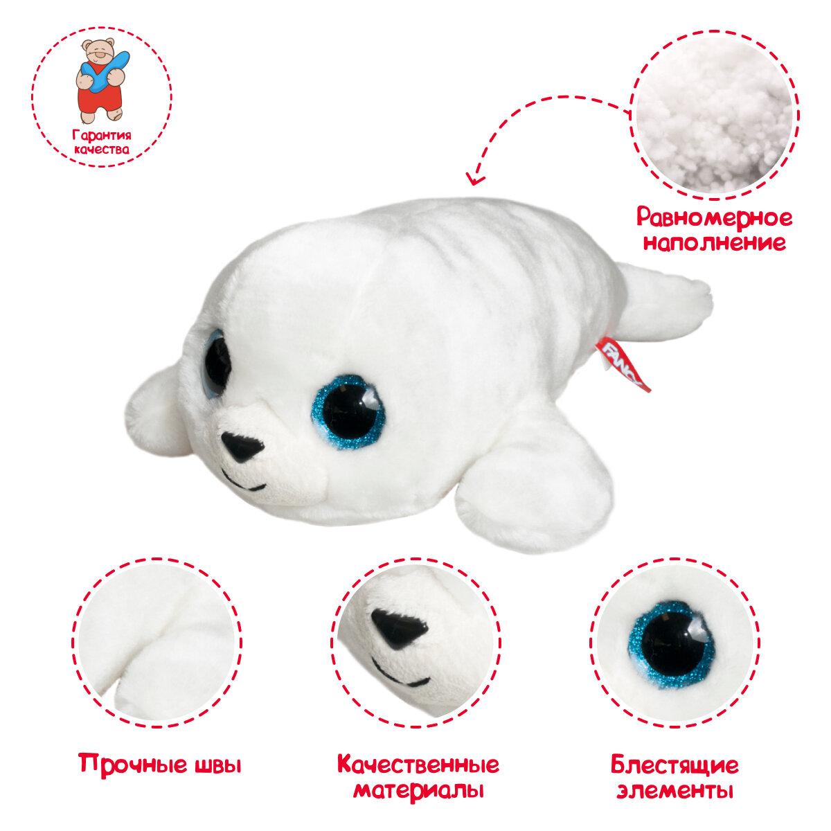 Мягкая игрушка обнимашка Fancy Тюлень Глазастик 34 см. интересное: