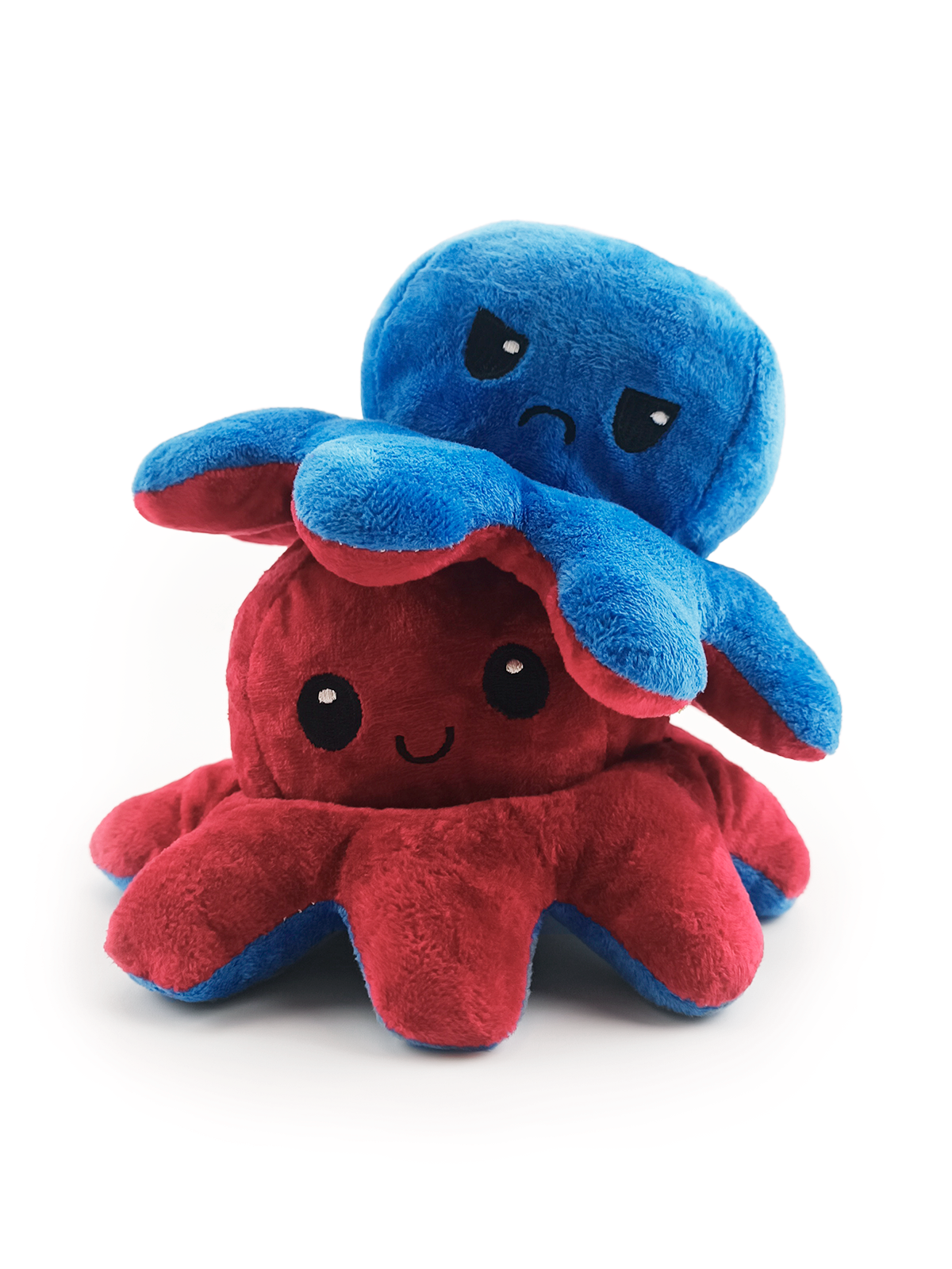 Купить Осьминог перевертыш мягкая игрушка двусторонняя, синий и бордовый, 20 см