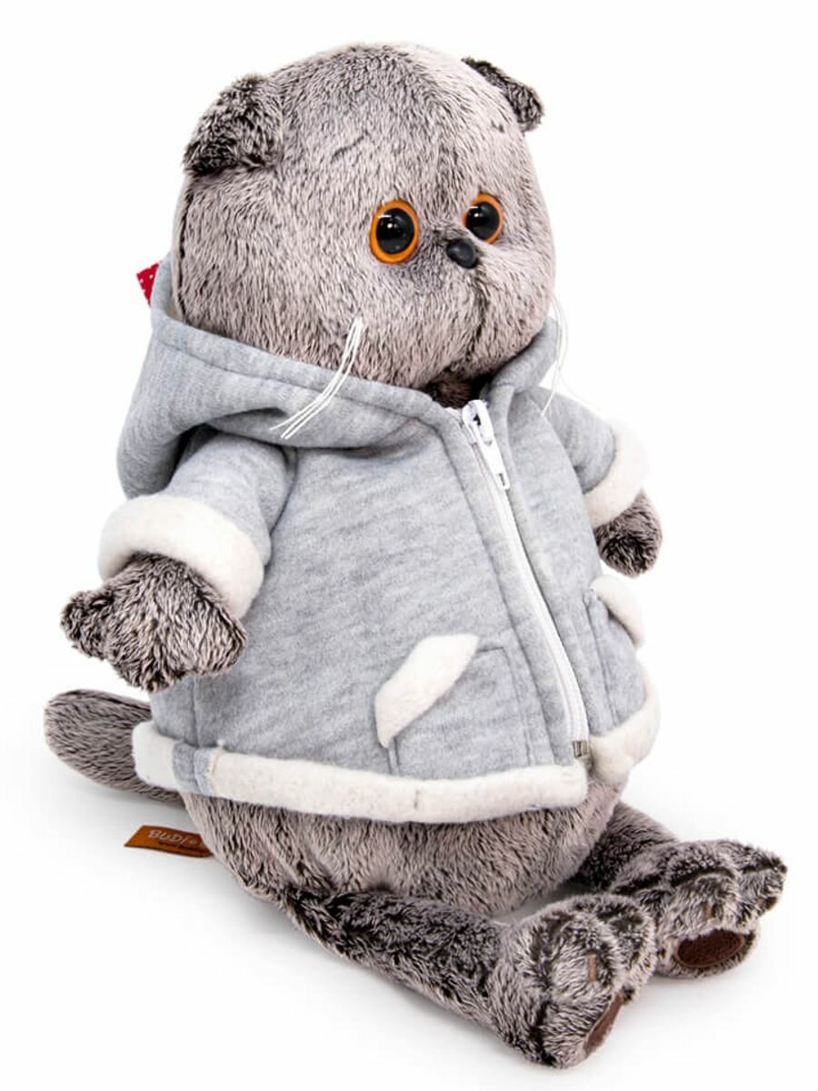 Мягкая игрушка Basik&Co Кот Басик в толстовке Дракончик, 30 см, серый, BUDIBASA