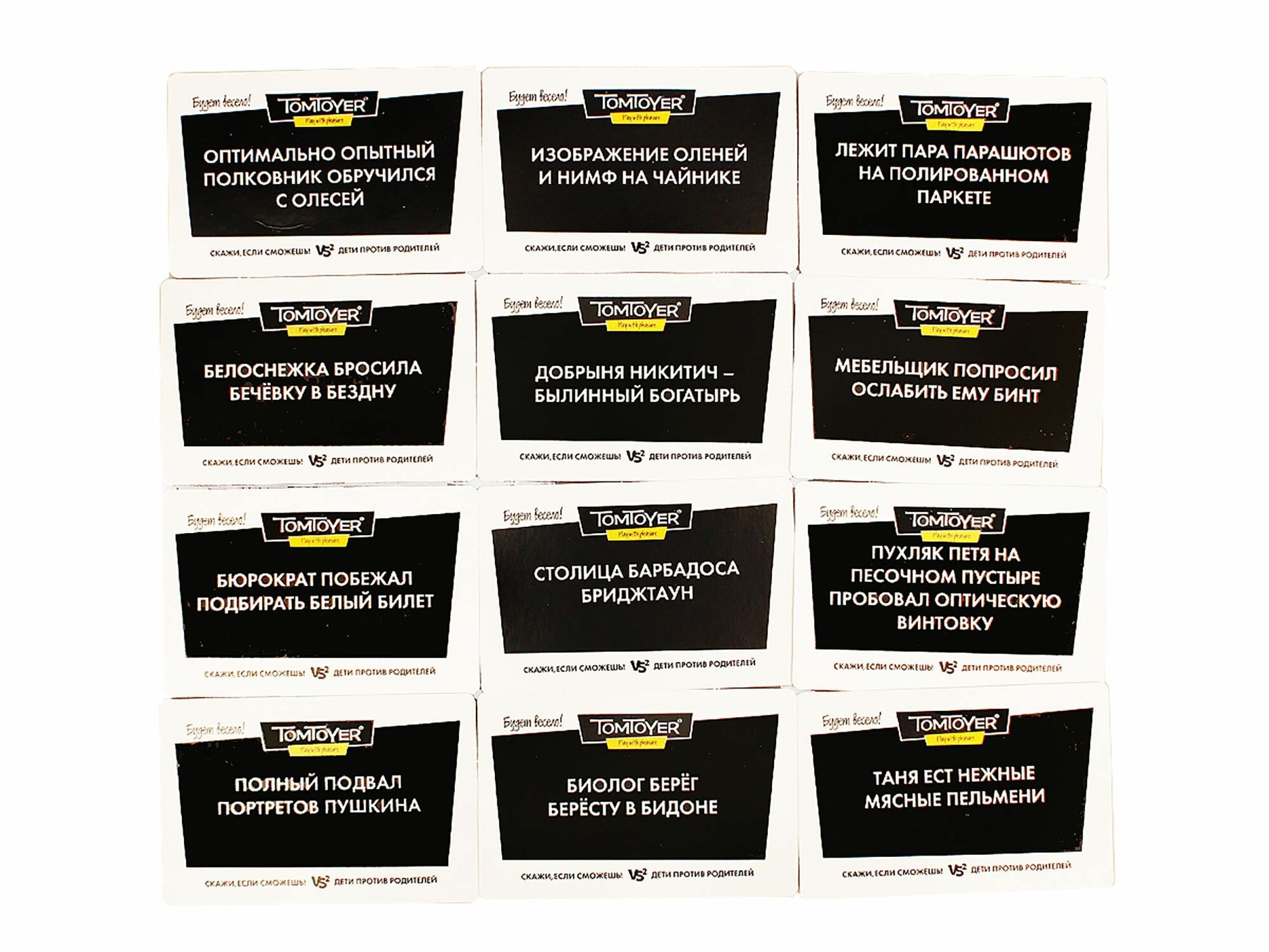 Ниже Вы можете прочитать отзывы на Настольная игра-бубнилка "Скажи если сможешь" на объяснение и угадывание слов, для всей семьи, в наборе 200 карт на 400 фраз и 10 загубников, ознакомится с подробными характеристиками, посмотреть интересные обзоры и фотографии на Настольная игра-бубнилка "Скажи если сможешь" на объяснение и угадывание слов, для всей семьи, в наборе 200 карт на 400 фраз и 10 загубников.