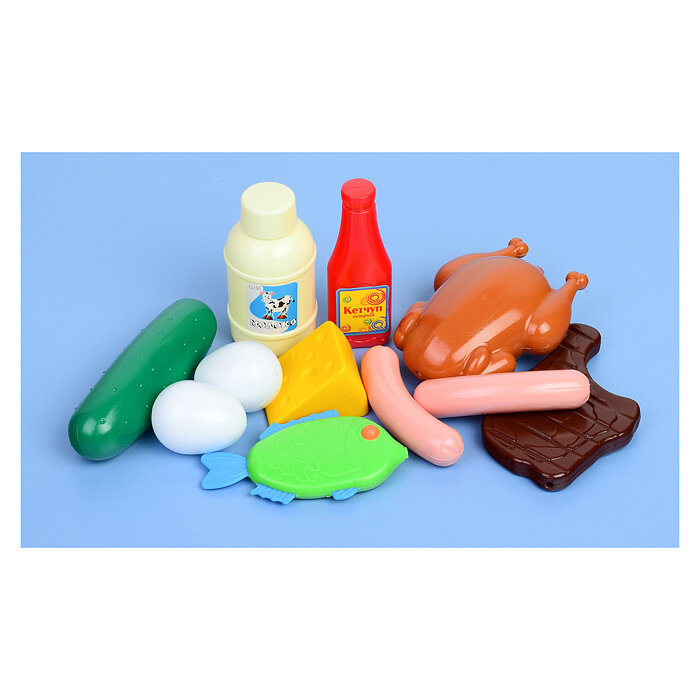 | Комплектация | холодильник / 2 яйца / рыба / курица / сосиски 2шт. / молоко / сыр / огурец / стейк / кетчуп |