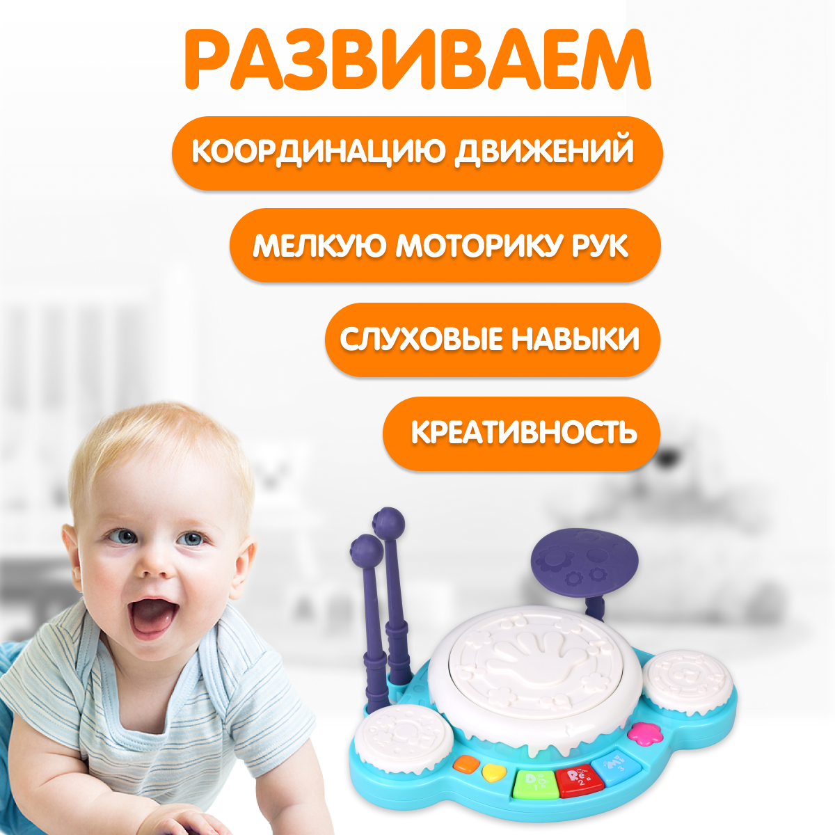 Музыкальная развивающая детская игрушка Барабанчик Жирафики