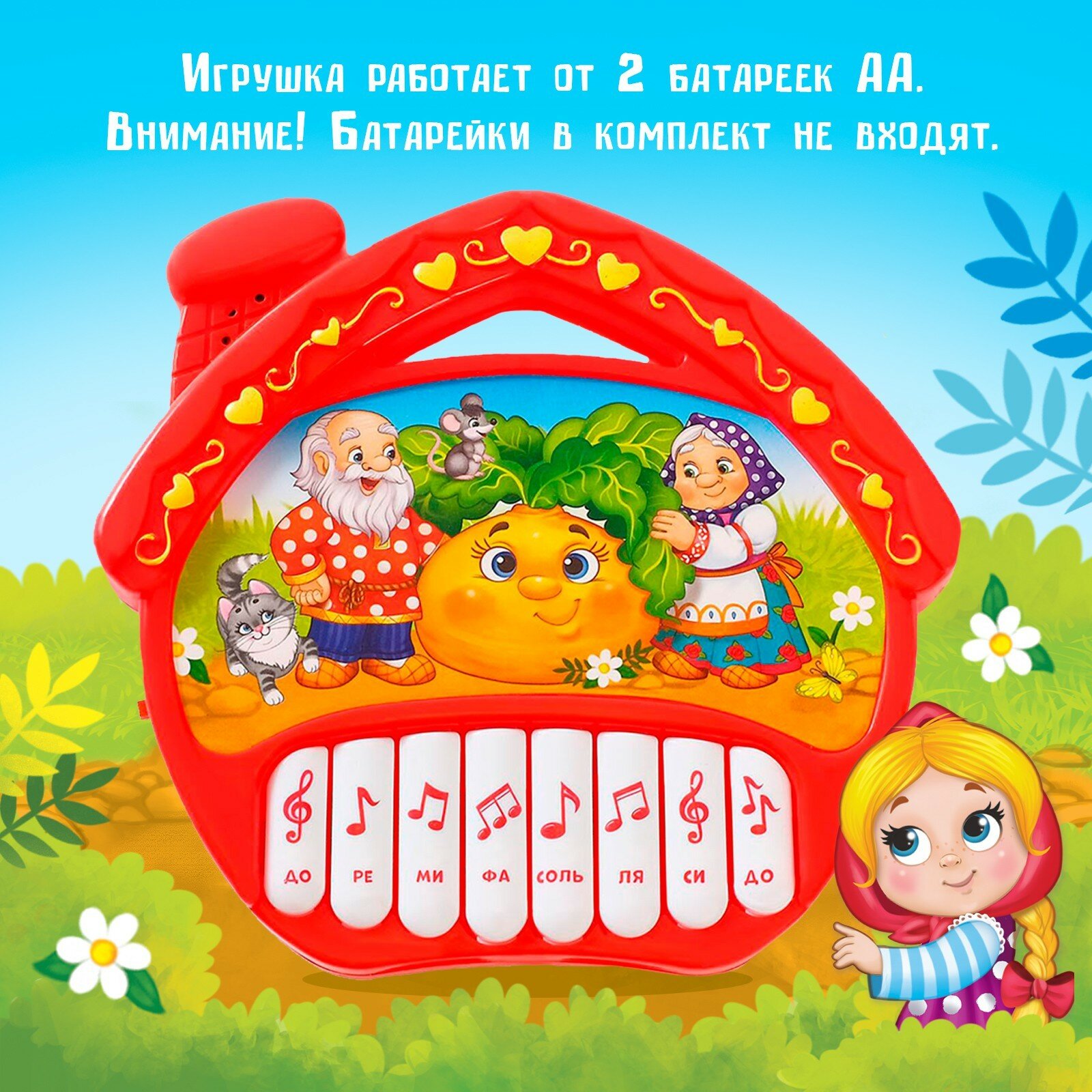 ZABIAKA Музыкальная игрушка-пианино «Любимые сказки», звук, батарейки, цвет красный
