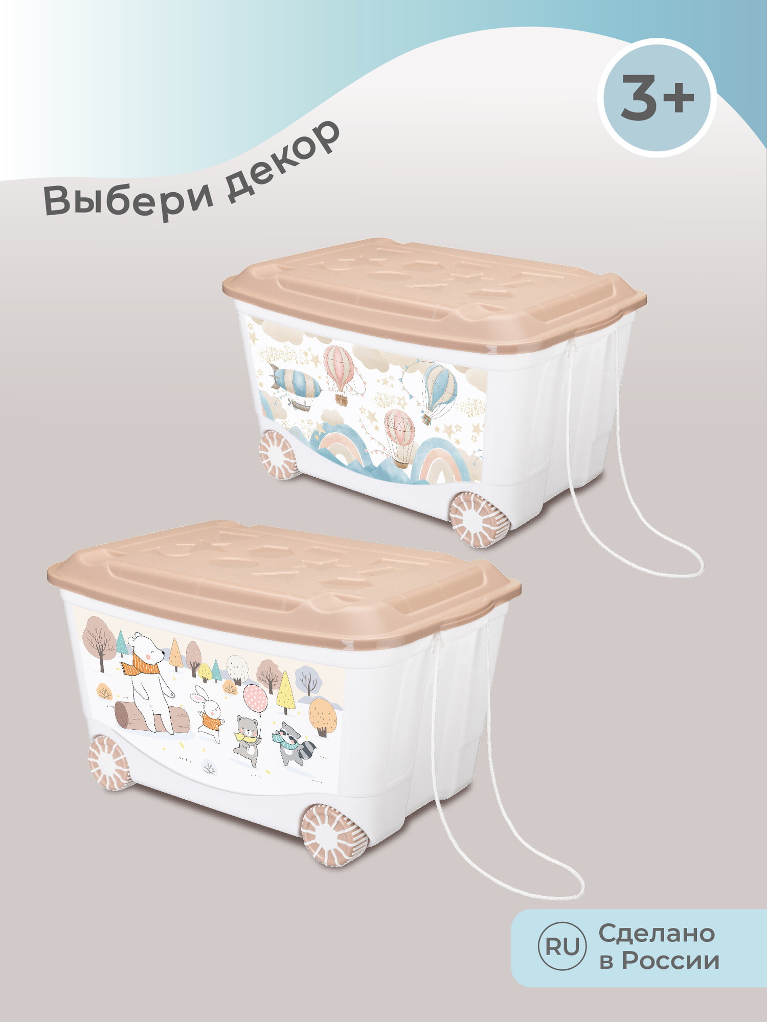 Ящик для игрушек Пластишка на колесах, с декором "Зверушки на опушке" 580х390х335 мм, 45 л, темно-бежевый (43138093251)