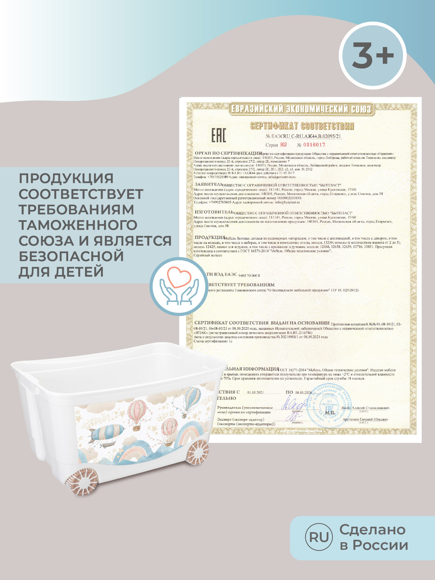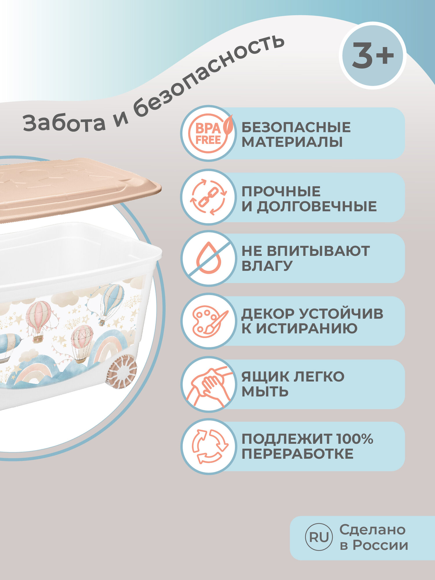 Ящик для игрушек на колесах с декором «Воздушные шары» цвет темно-бежевый 58*39*33,5см, 45л
