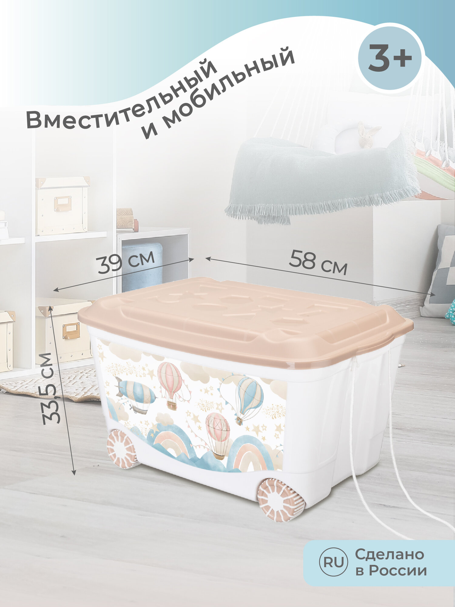 Купить Ящик для игрушек «Воздушные шары», на колёсах 58 × 39 × 33,5 см, 45 л, тёмно-бежевый