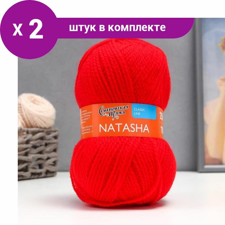 Нитки для вязания Семеновская пряжа (Natasha) Наташа 5 шт, полушерсть, кармин №213