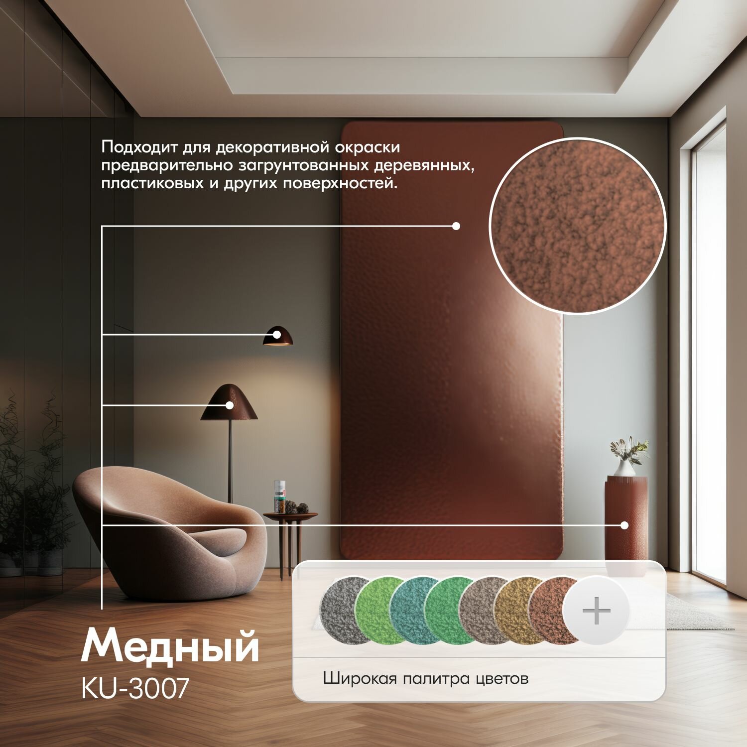 Краска спрей KU-3007 медная молотковая по ржавчине (520мл), KU3007 KUDO KU-3007