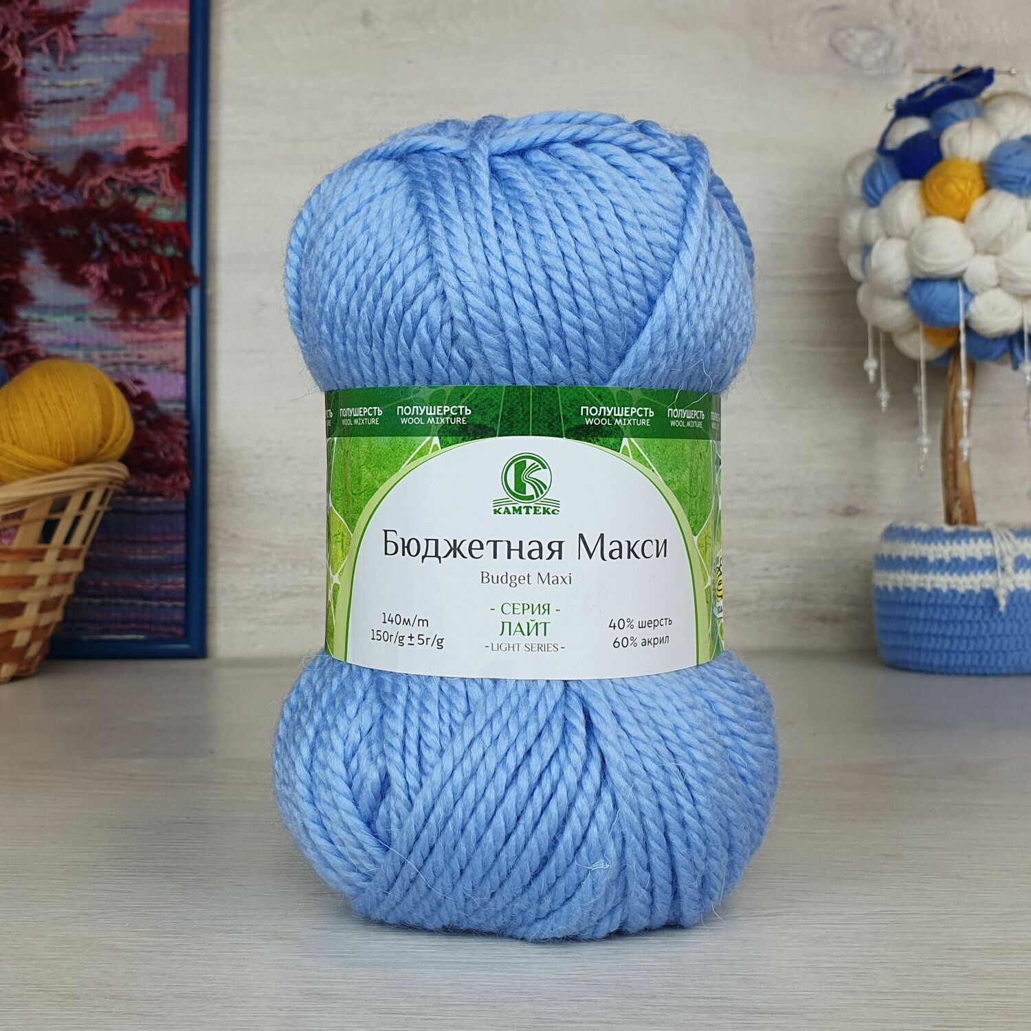 Пряжа для вязания Камтекс 'Бюджетная макси', 150г, 140м (шерсть 40%, акрил 60%) (015 голубой), 4 мотка