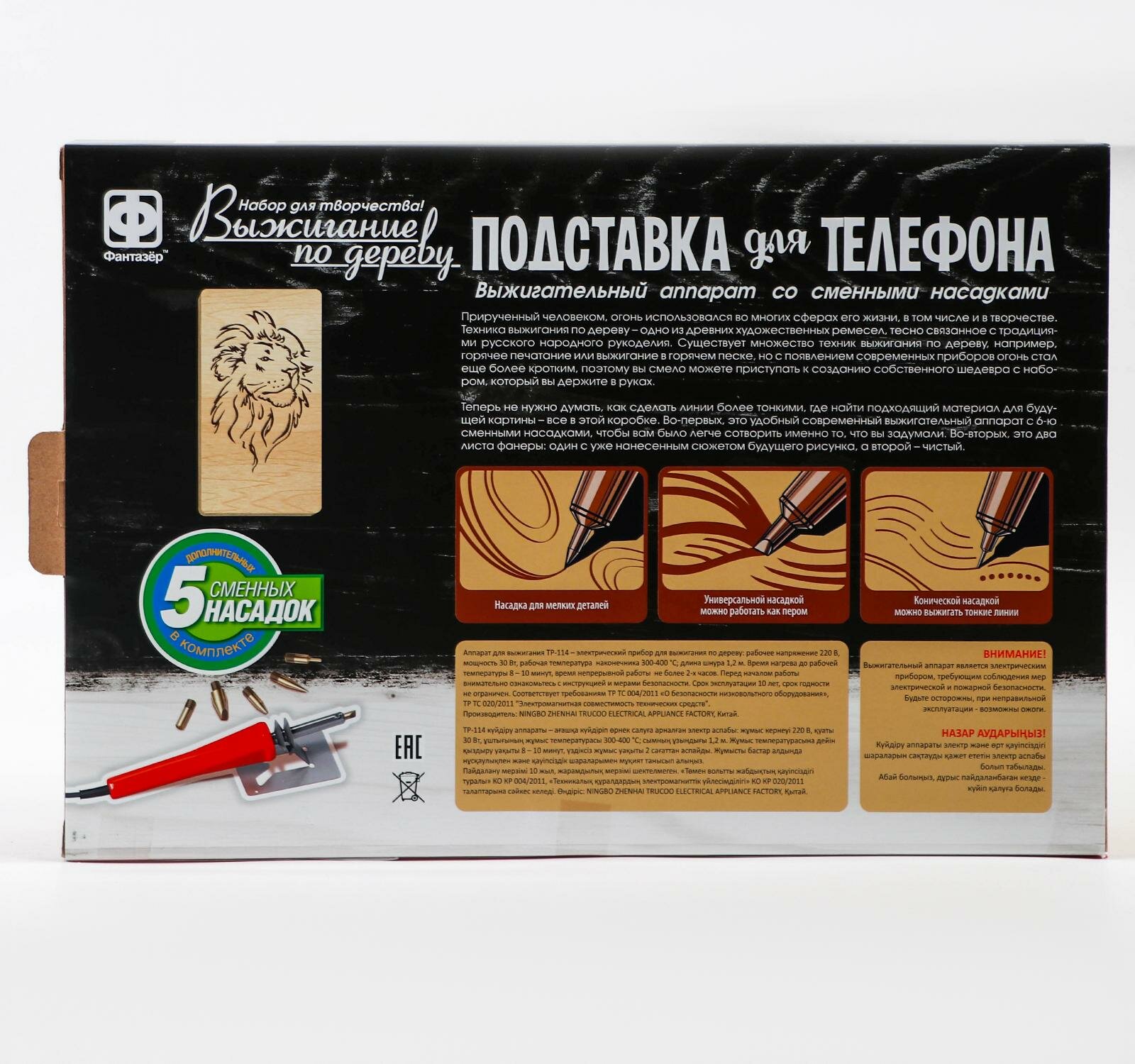 Набор для выжигания по дереву Фантазер Подставка для телефона "Отважный лев" (371403ФН) интересное: