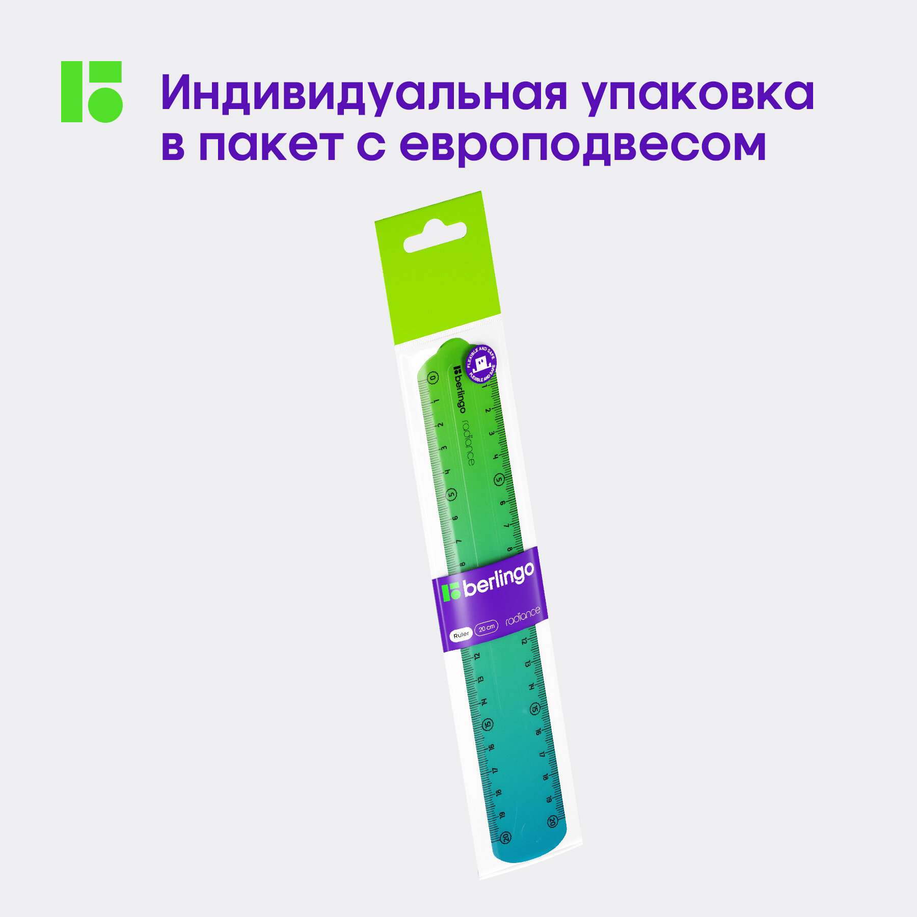 Линейка 20см Berlingo "Radiance", пластиковая, гибкая, голубой/зеленый градиент интересное:
