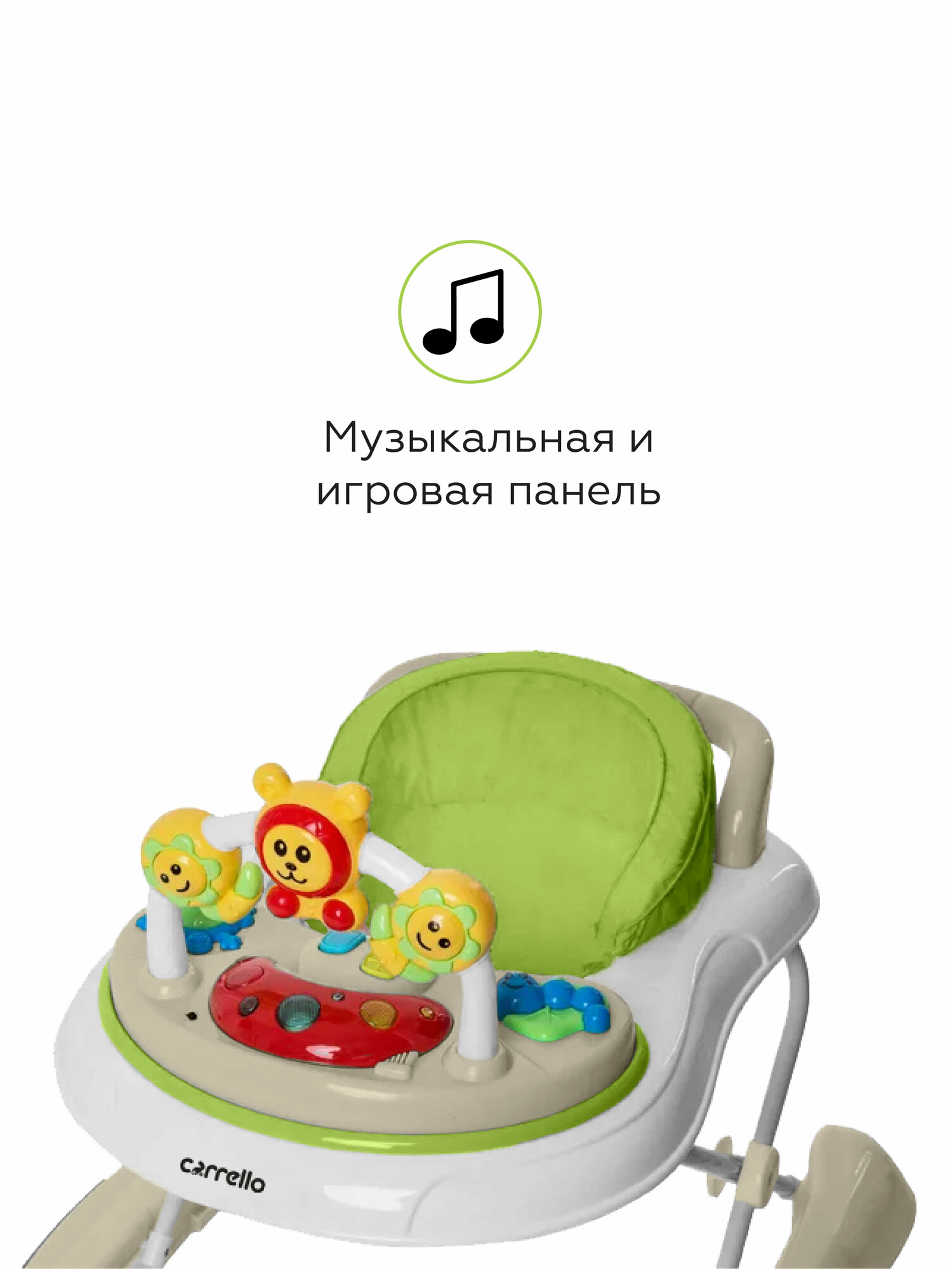 Купить Ходунки детские CARRELLO Libero, с игровой панелью, регулировка сиденья, 4 колеса, зеленый